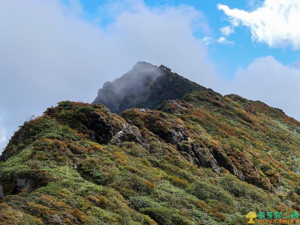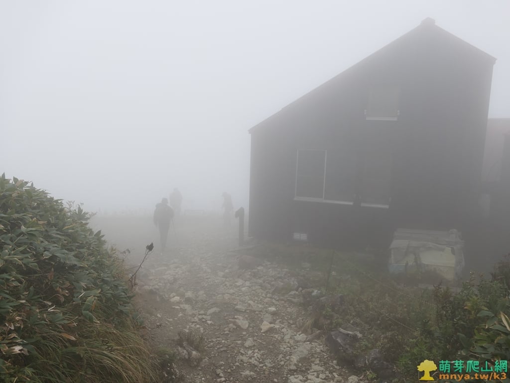 ▲回看一ノ倉岳避難小屋平台,周圍的雲霧不斷湧起,有種快要變天的感覺,拍完照後開始原路回程。