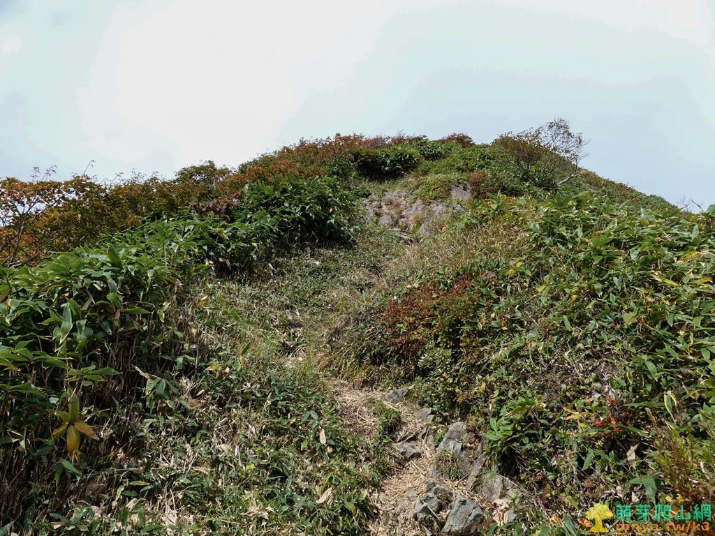 ▲沿側坡陡上接回稜線,順稜陡升往一ノ倉岳。