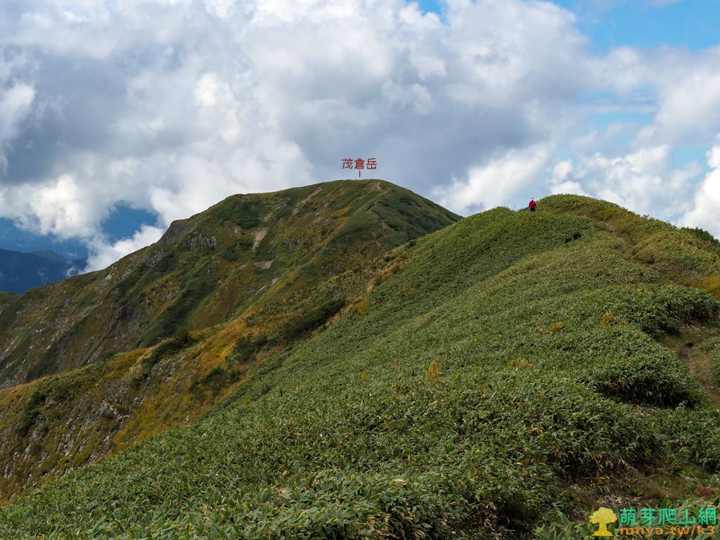 ▲從一ノ倉岳眺望續行的稜線路通往茂倉岳(1978M),直距約0.73K,單程約要半小時,茂倉岳山頂無基石加上時間、體力因素決定在此折返,且山脊線上氣候變化多端,避免一到下午就變天還是趕緊下山為上策。