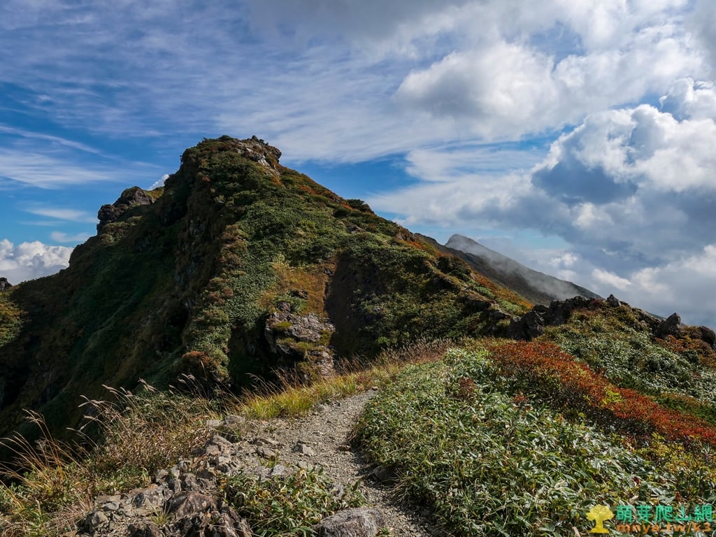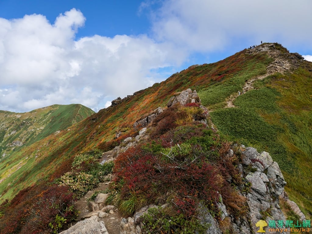 ▲至トマの耳與オキの耳之間的稜線低點,前方開始轉為爬坡,上到最頂端還有不小的高度落差。