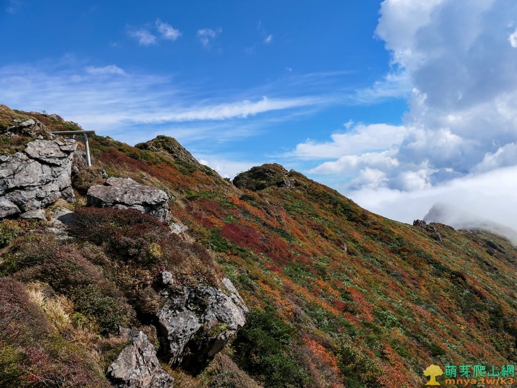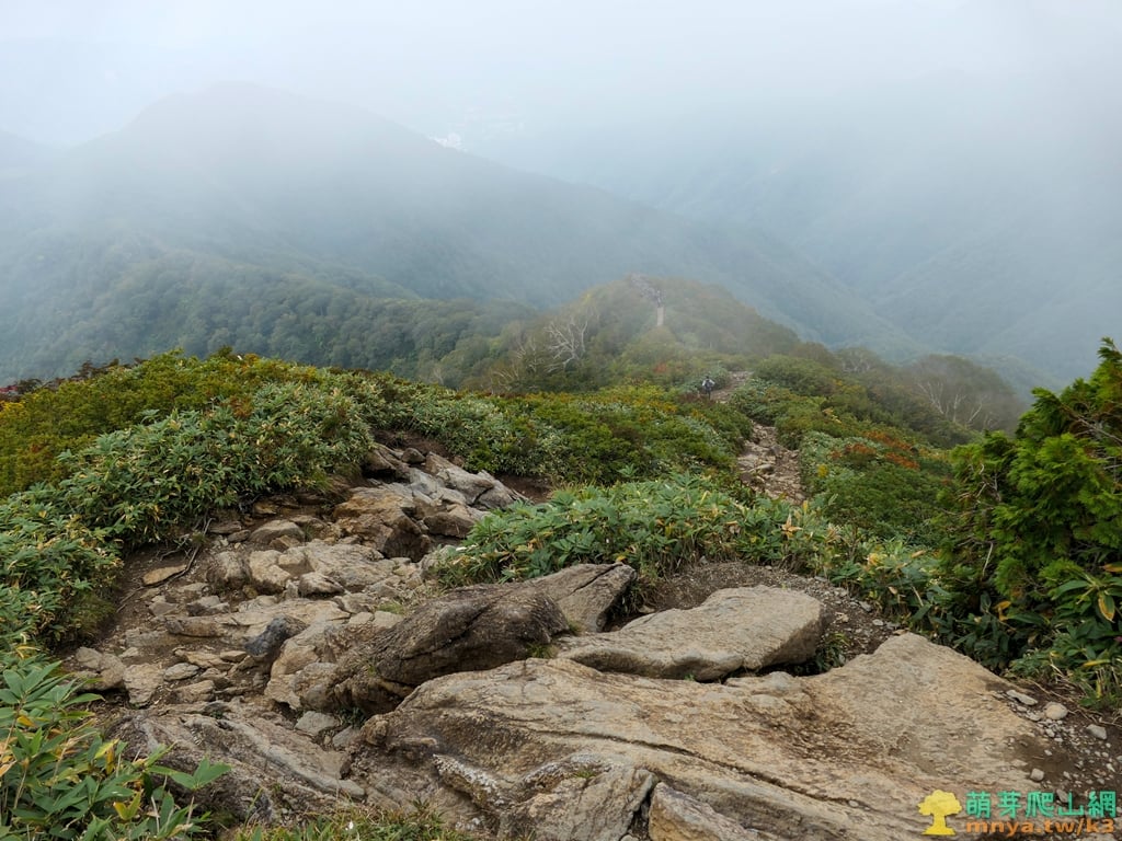 ▲14:29,下行回到海拔高約1665公尺的「天狗の溜まり場」,下至此處漸漸脫離山稜上的雲霧帶。