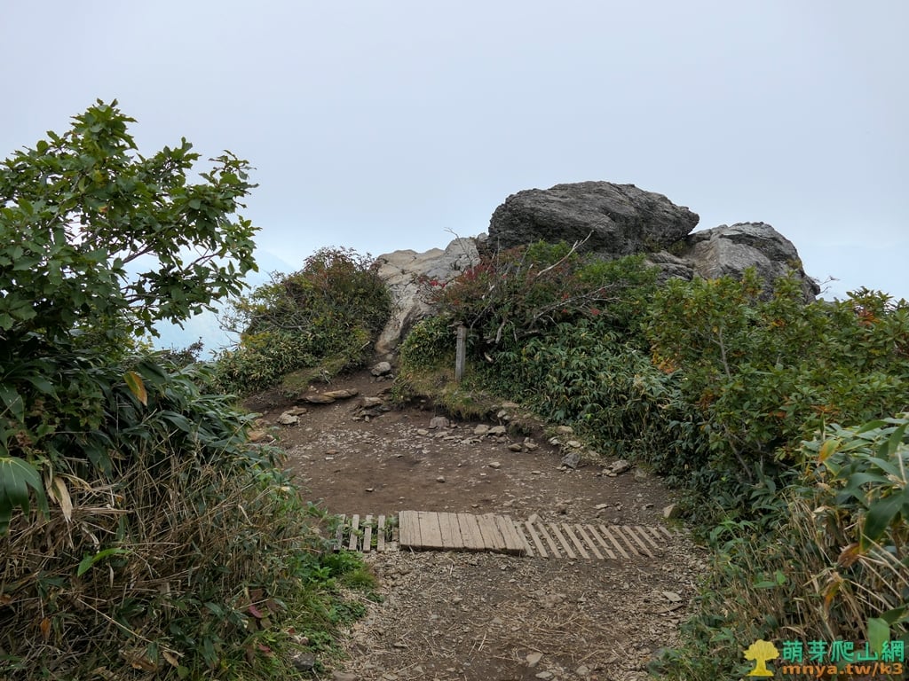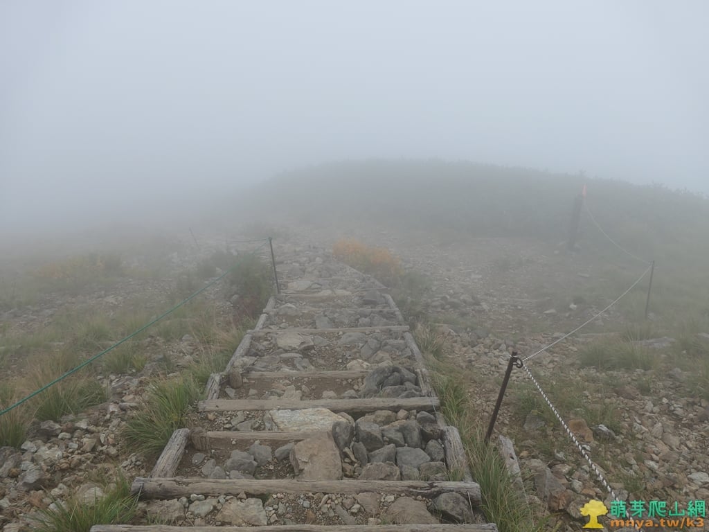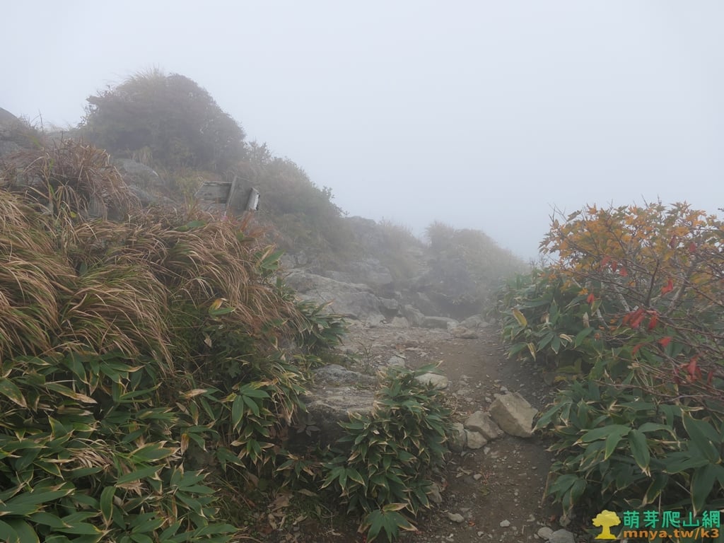 ▲14:05,離開肩の小屋繼續回往天神尾根方向原路下山,經過「肩の広場」山坡地,到了下午山區算是徹底變天了,但還好只是起霧沒有下雨。