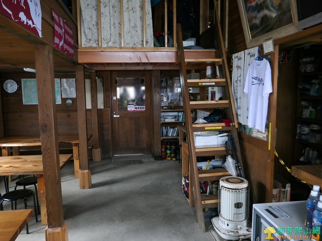 ▲14:55,歷經漫長陡降終於返回海拔約1469公尺的熊穴沢避難小屋,繞至小屋正門進去稍作休息,裡頭有不少下山途中休息的隊伍。