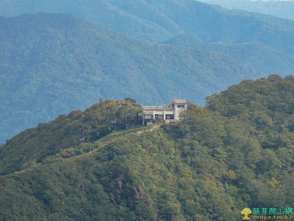 ▲拉近俯瞰天神峠ペアリフト(天神峠空中纜椅)的終點站天神峠(1502M),遠遠還能見到一些遊客。