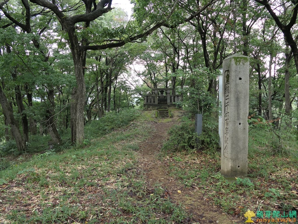 ▲爬坡上至古墳前方部的「八幡宮」,三等三角點位於八幡宮之右後方。