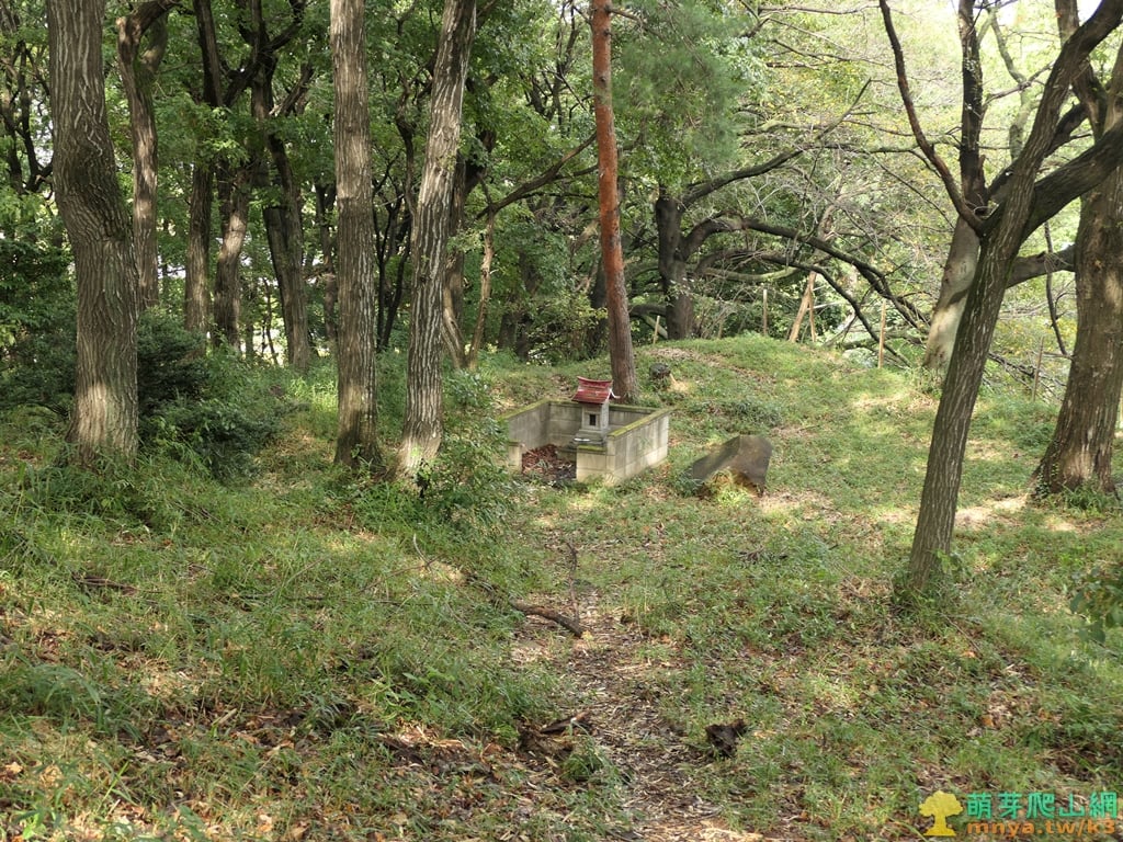 ▲古墳山丘東北側的不知名石宮,山丘上生長有許多青剛櫟等殼斗科植物。