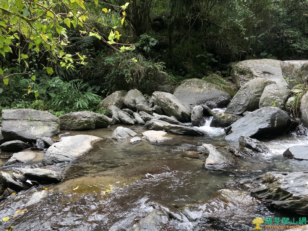 ▲下至馬岸溪找地方渡溪,下切點的正前方就剛好有幾塊大石可直接越過溪流。