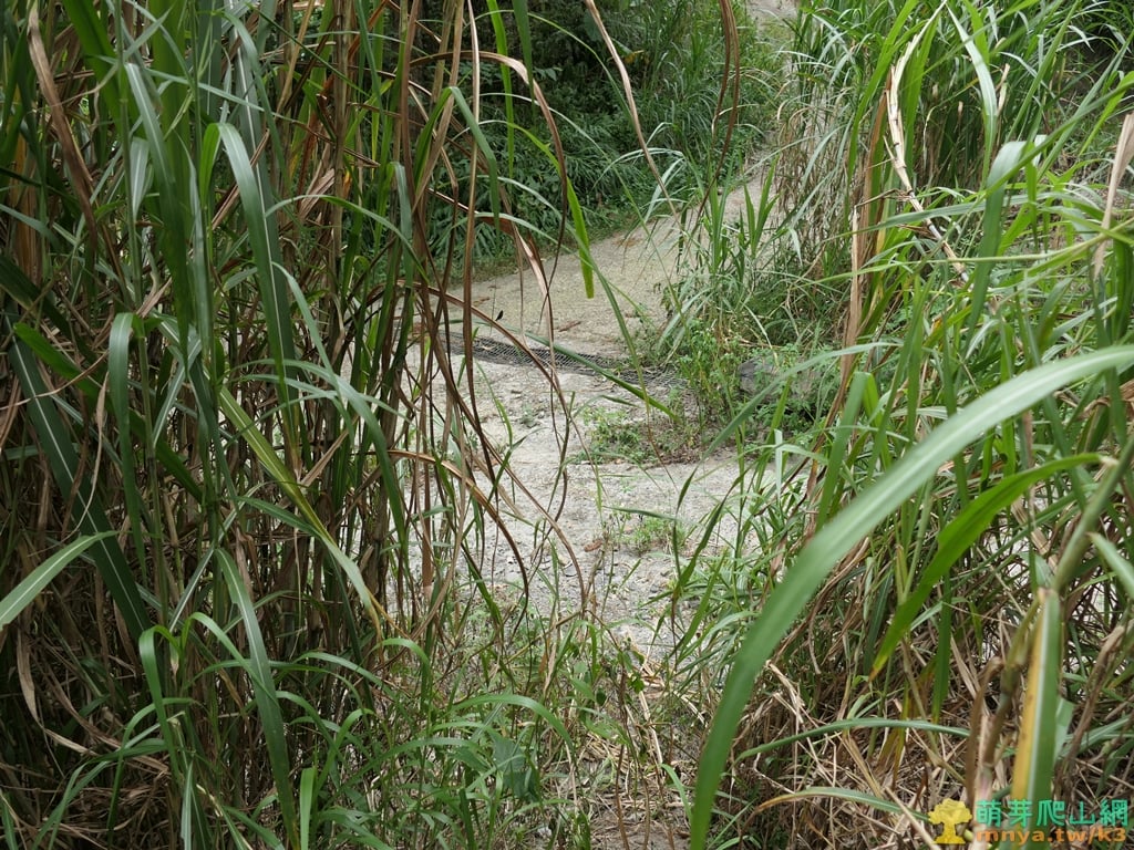 ▲鑽過一段雜草叢後廢土路似是左彎下去,繼續取直山坡,沒有路跡只能自行開路。