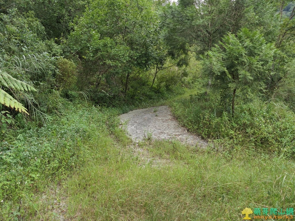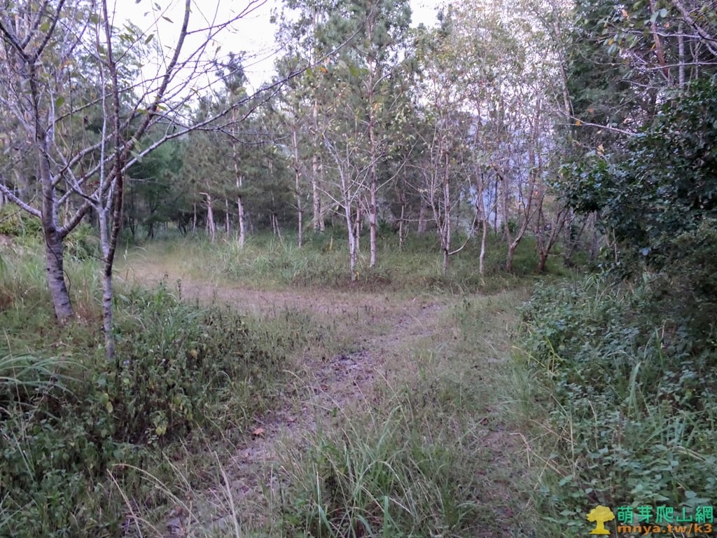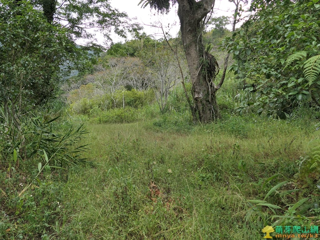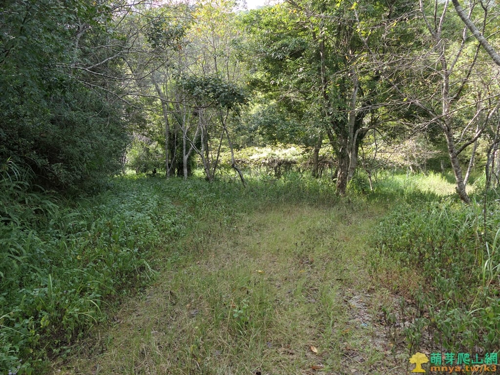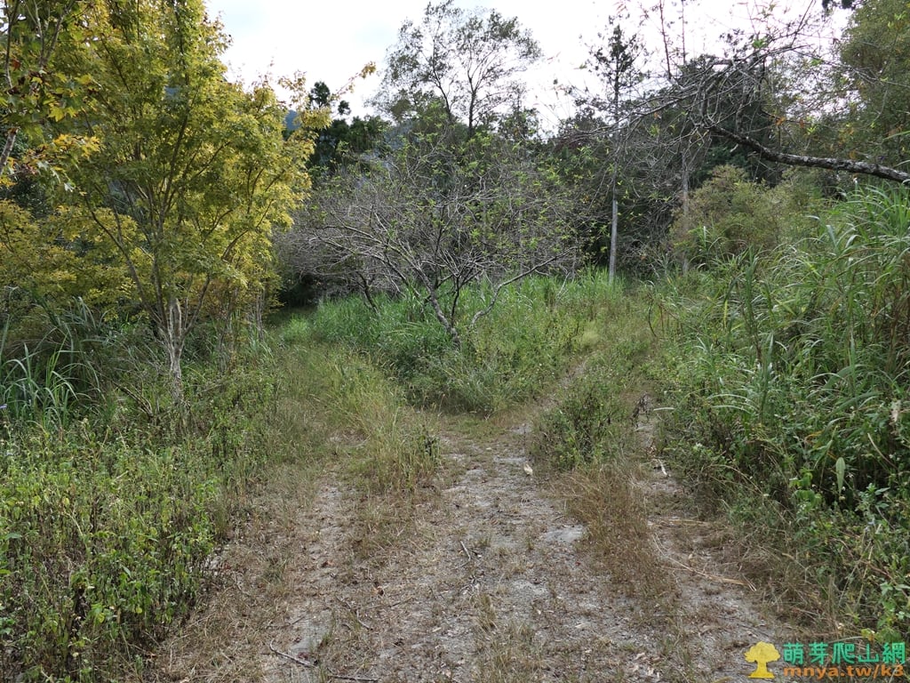 ▲右斜方上坡一段路後至山坡的一片寬敞平台地,路條向右前方綁去。