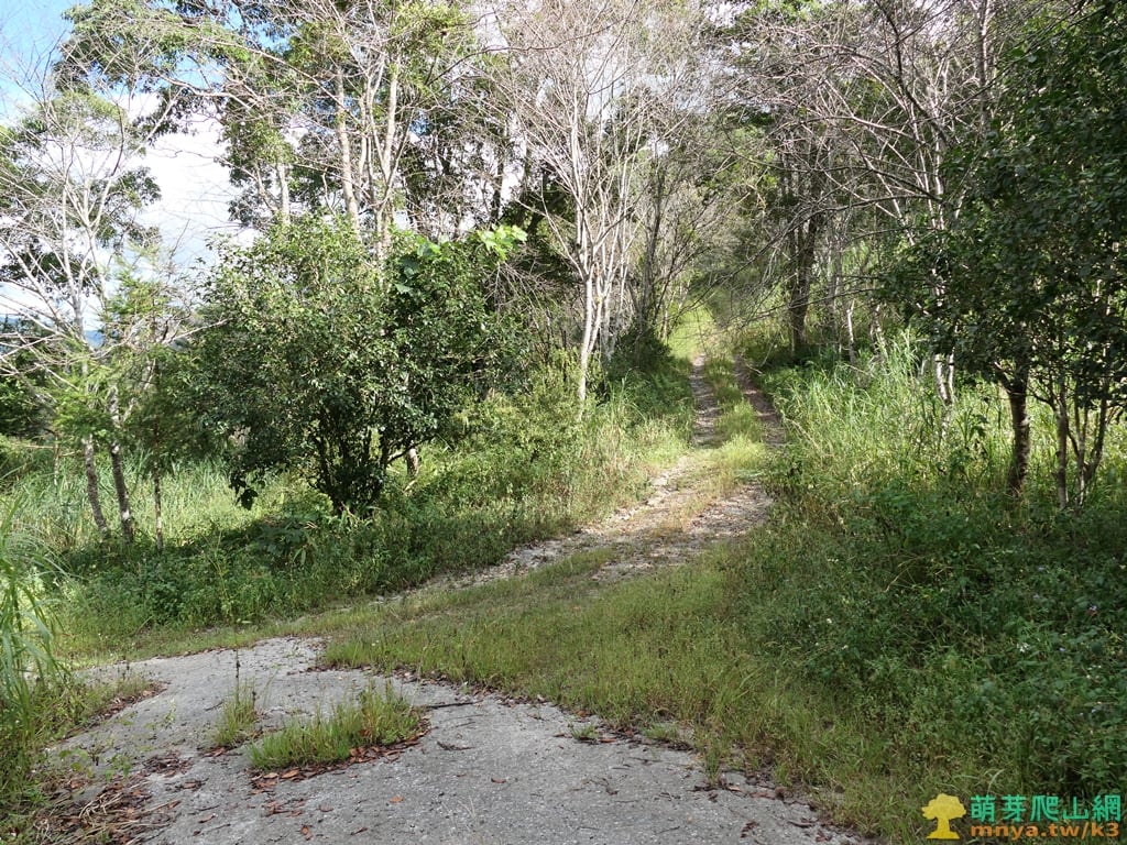 ▲順著荒廢的開墾地上行,土石路間略有破碎的水泥路面,左下方山坡可見平行的水泥路(兩線之後會相交)。