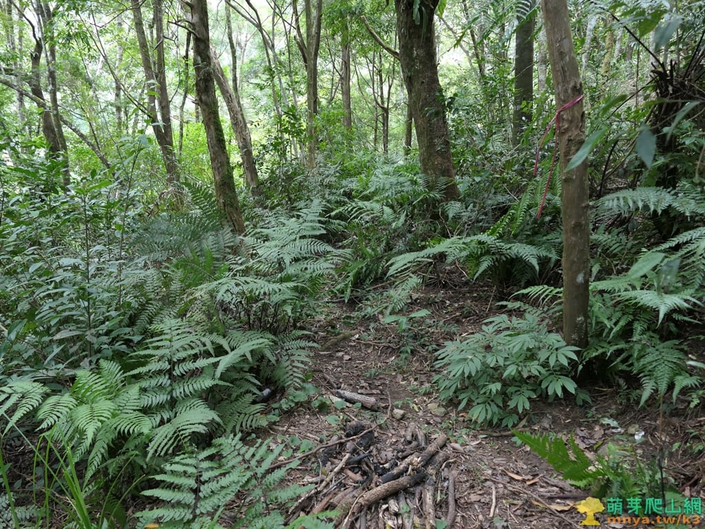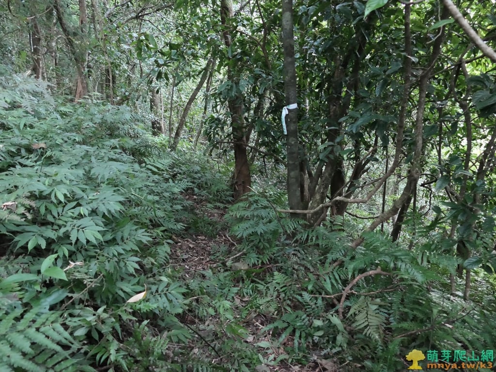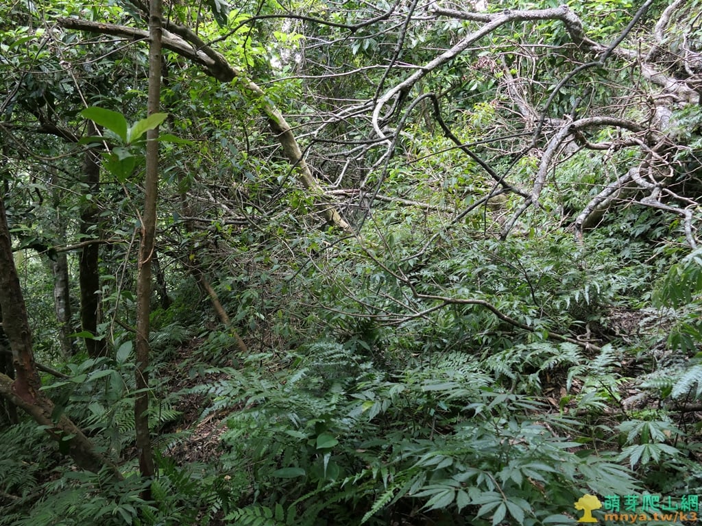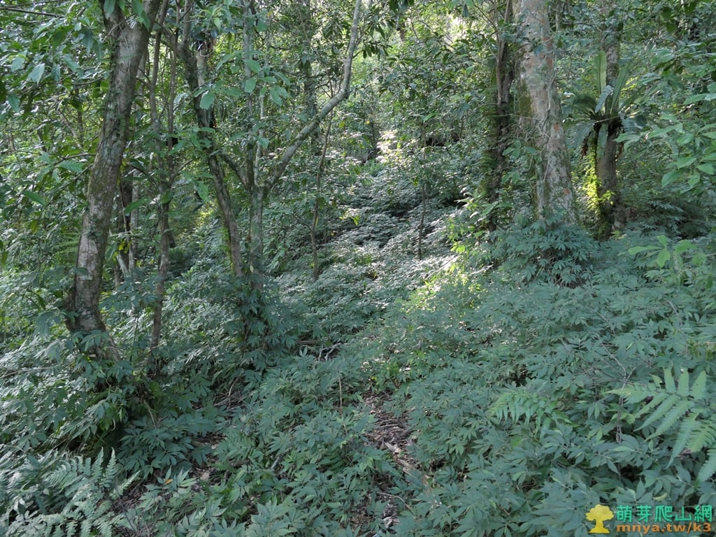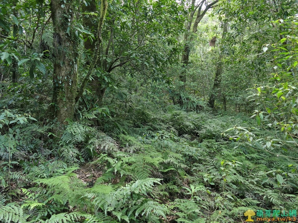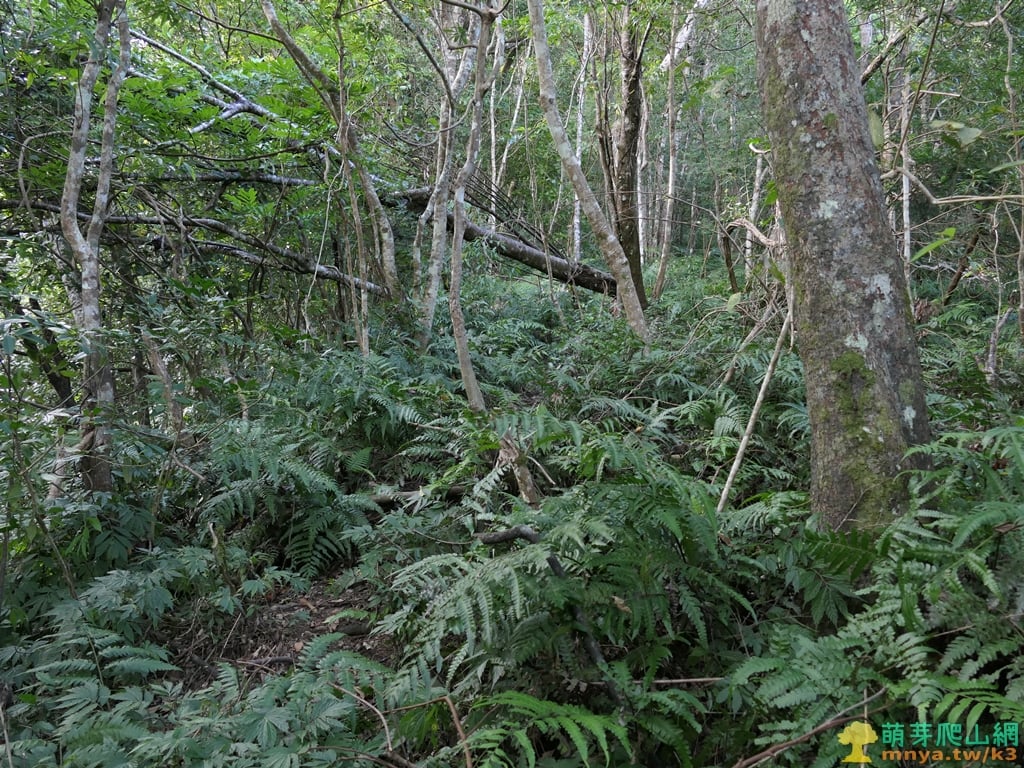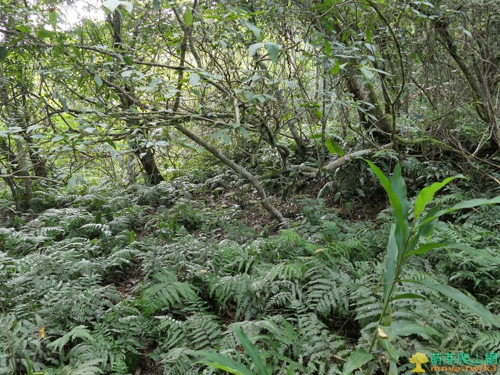 ▲繼續緩上行,山坡蕨草茂盛路跡不清楚,沿途要跟緊路條。