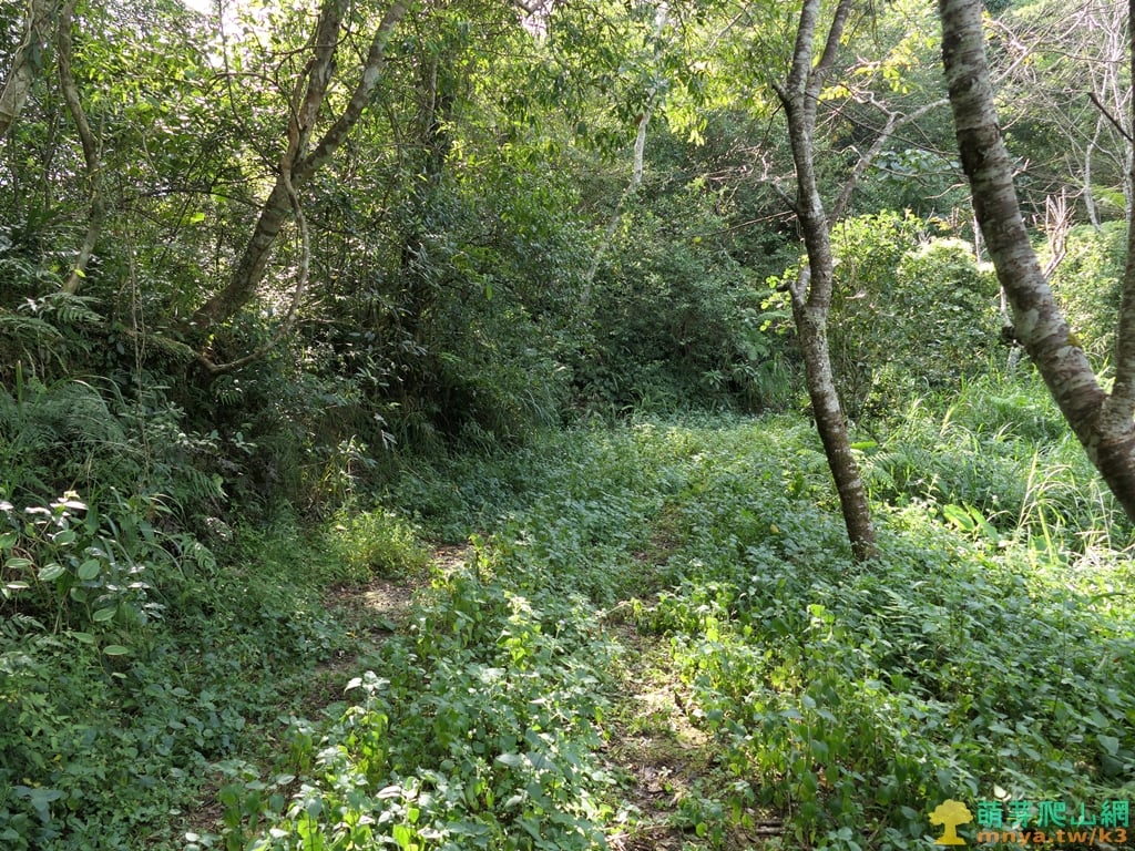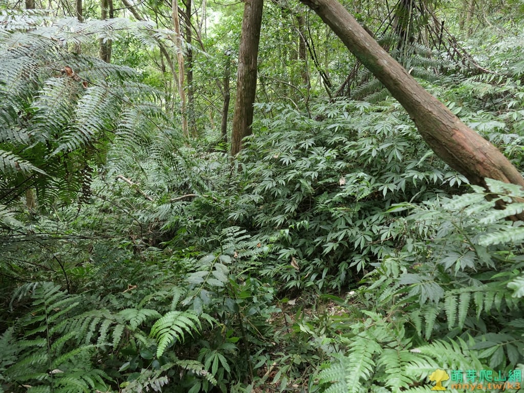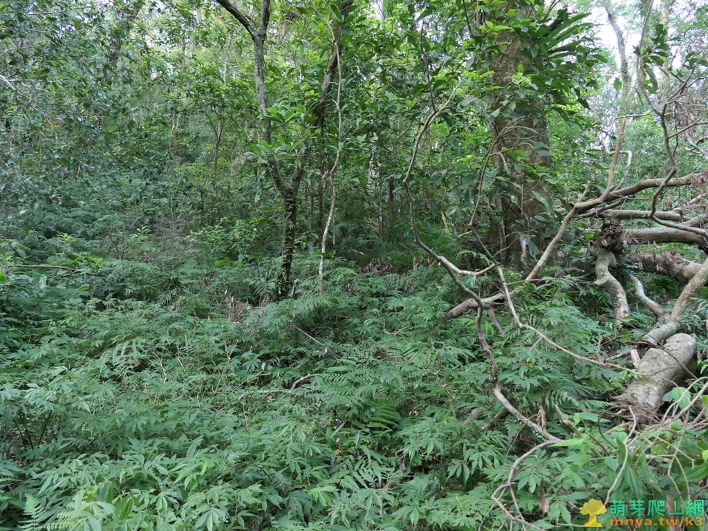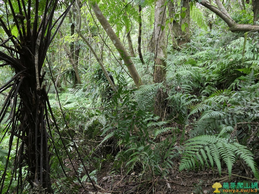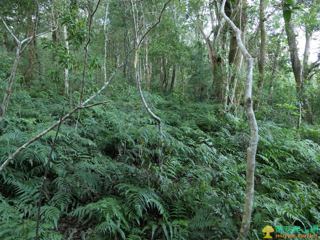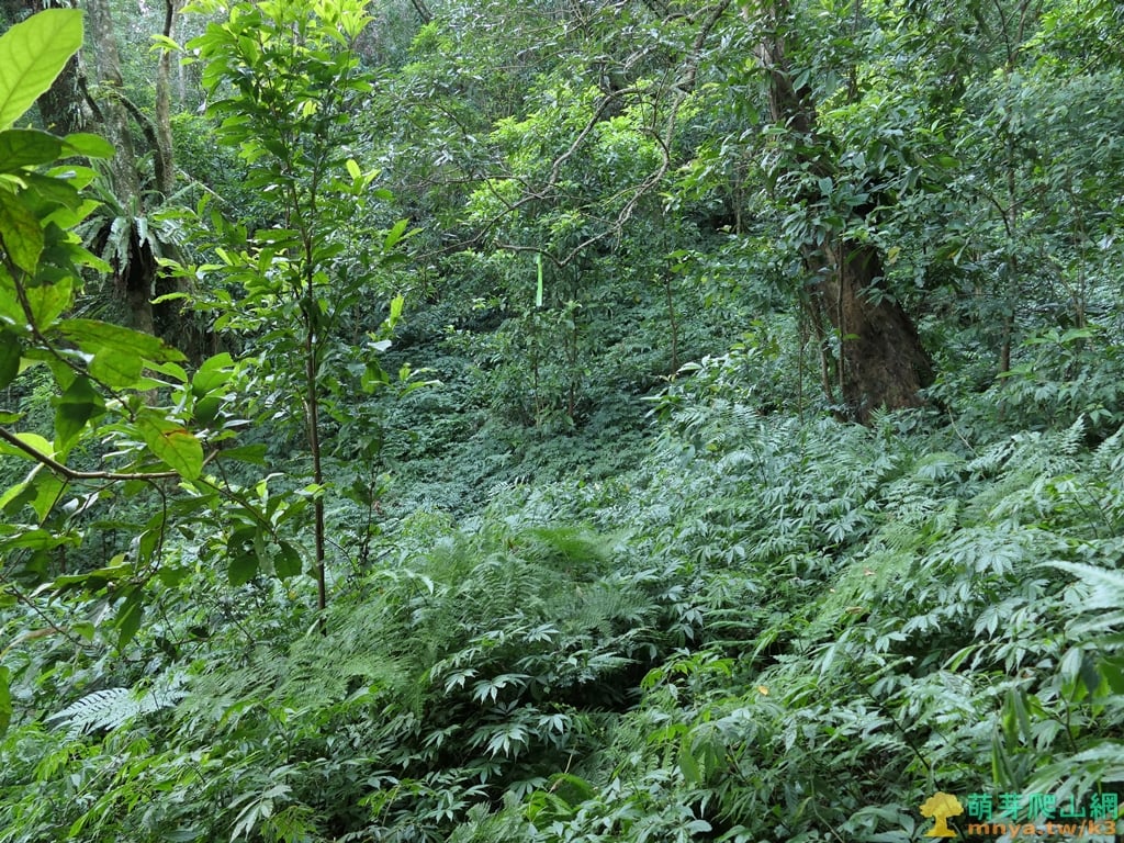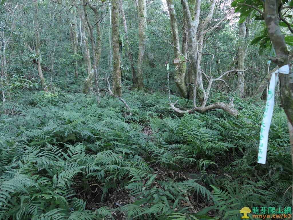 ▲繼續緩上行,山坡蕨草茂盛路跡不清楚,沿途要跟緊路條。