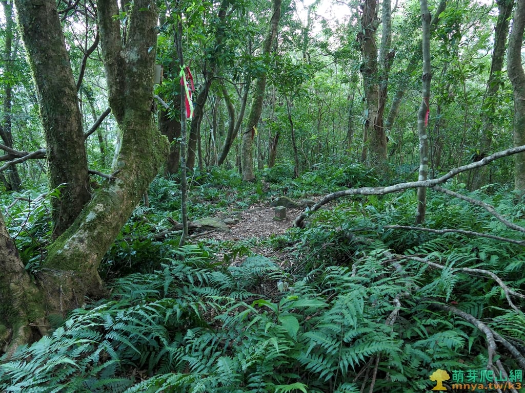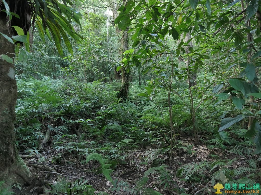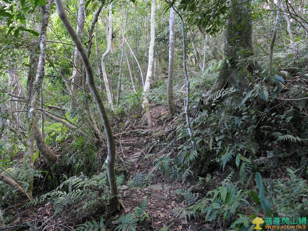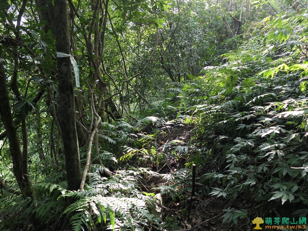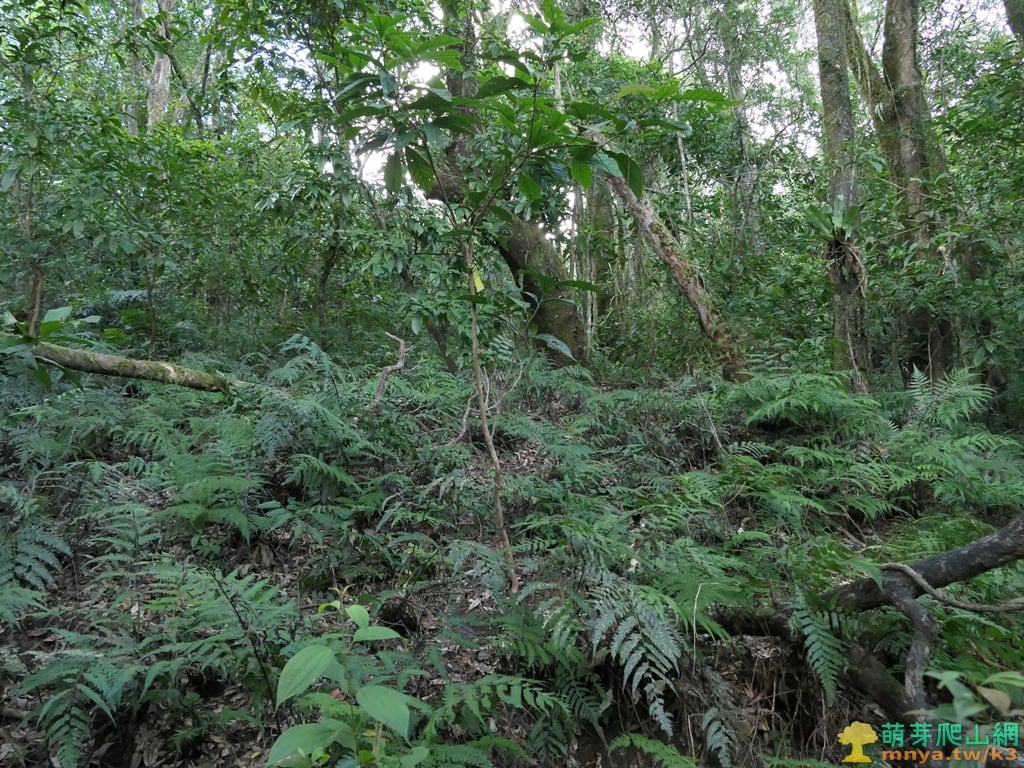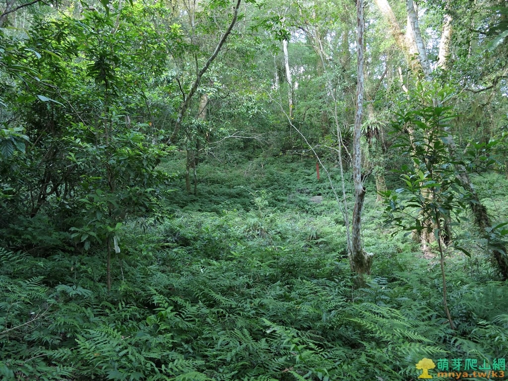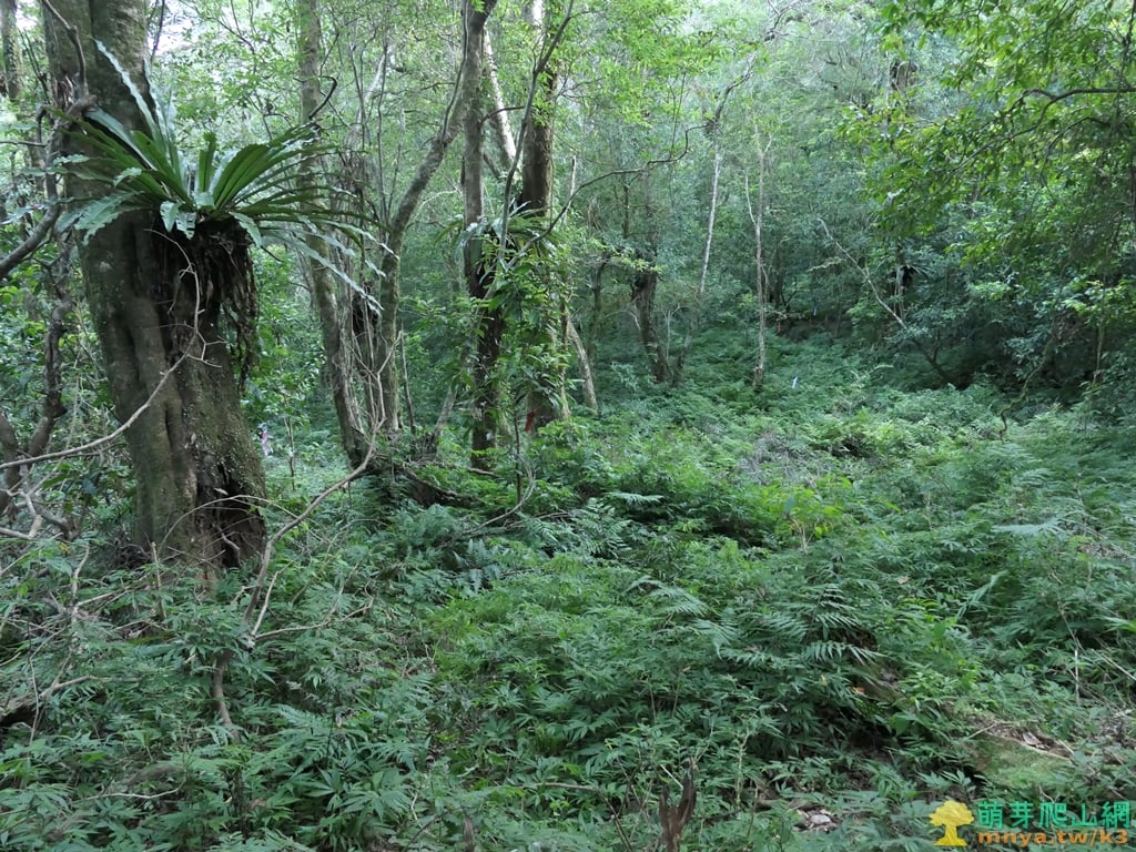 ▲繼續緩上行,山坡蕨草茂盛路跡不清楚,沿途要跟緊路條。