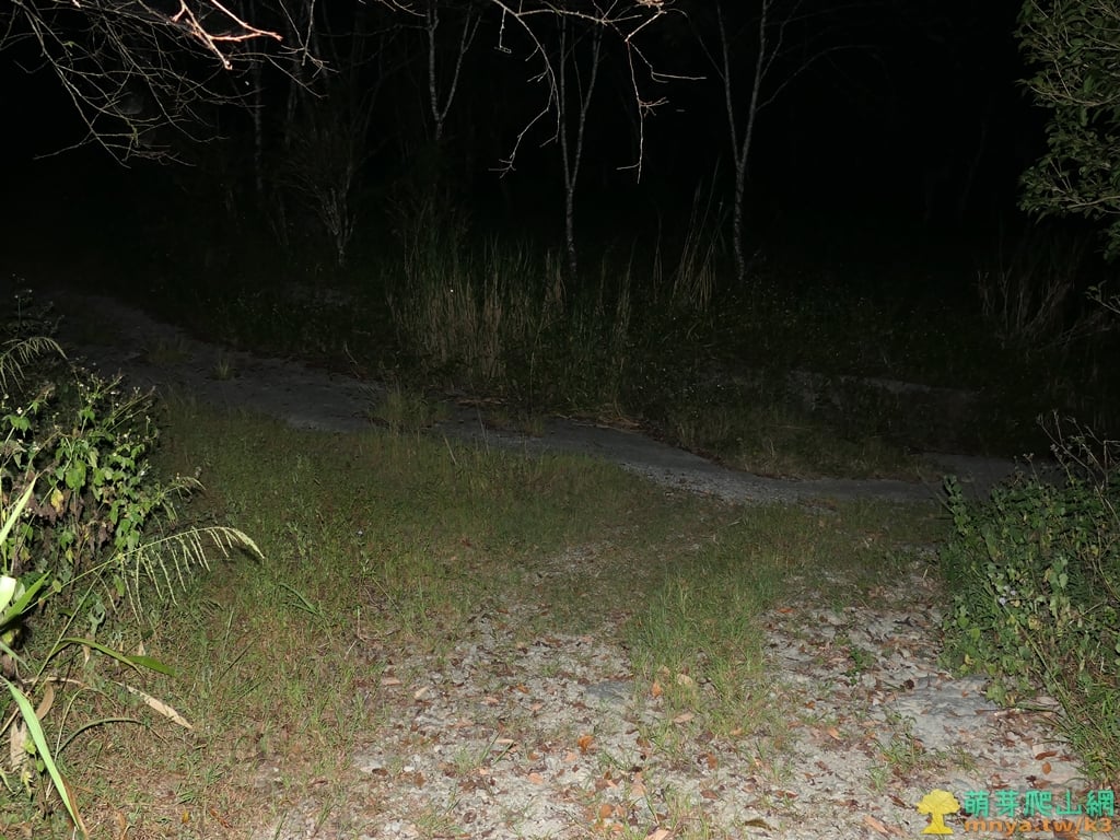 ▲17:42,回1.2K左右線交會點,回程走右下的土石路下山(即來時的左線),再往下走不久天色全暗。
