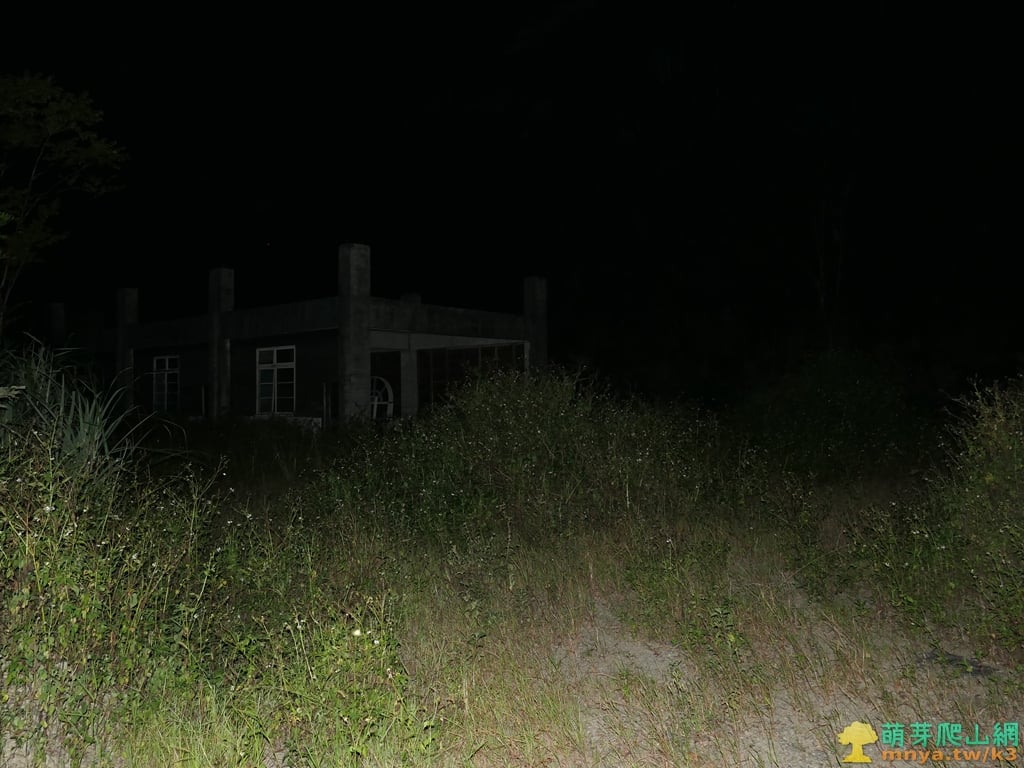 ▲17:47,回0.9K往馬岸山東峰登山口的岔路,取右下原路回經左側的廢棄建築。