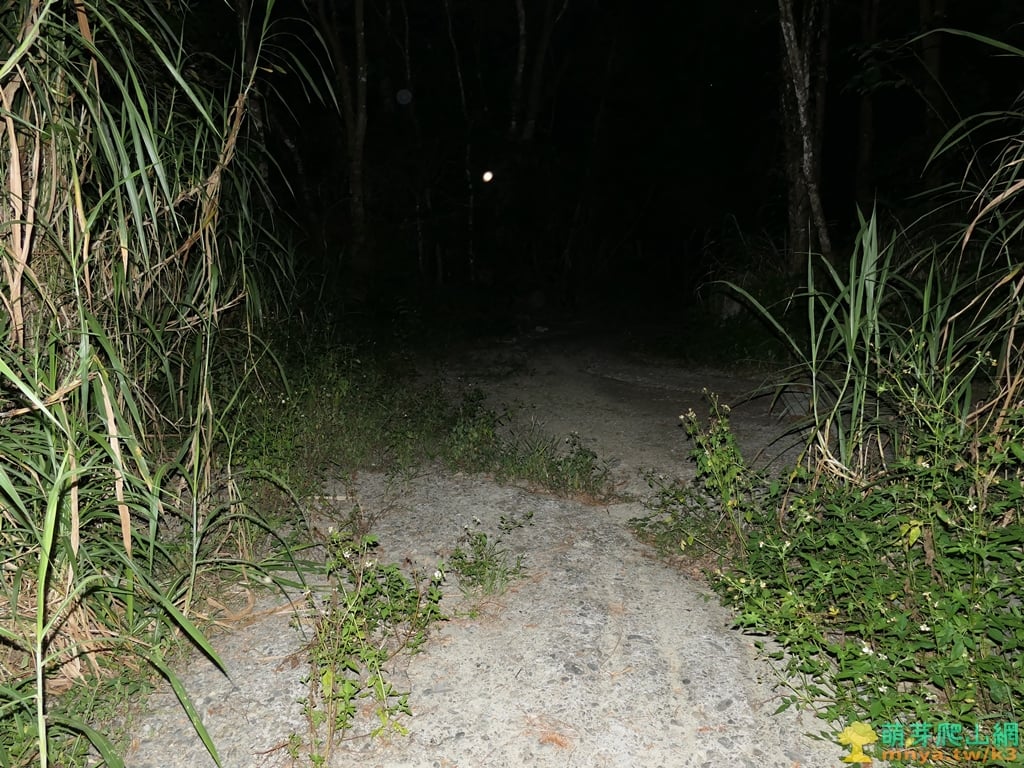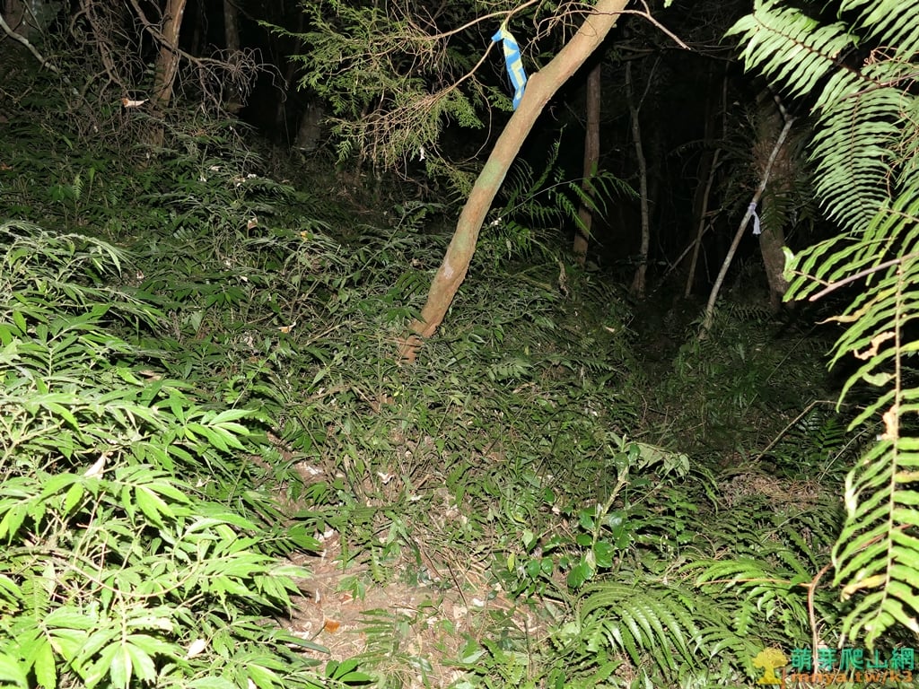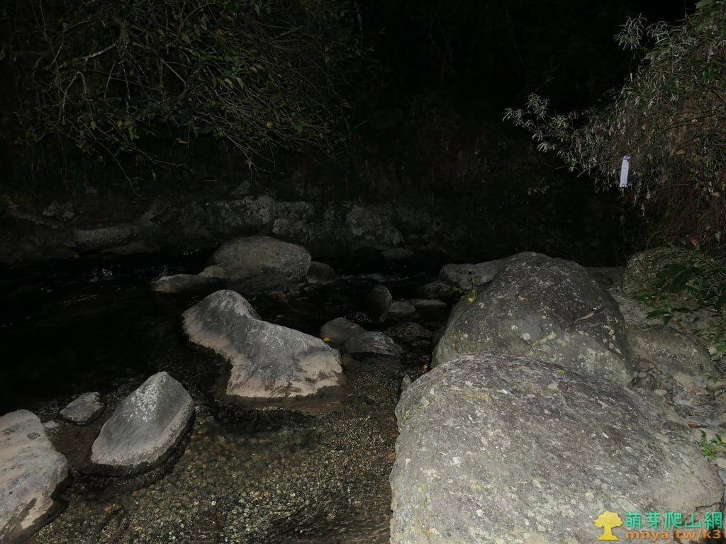 ▲18:06,返回馬岸溪渡溪點,摸黑過溪接回獵徑沿山坡陡上。