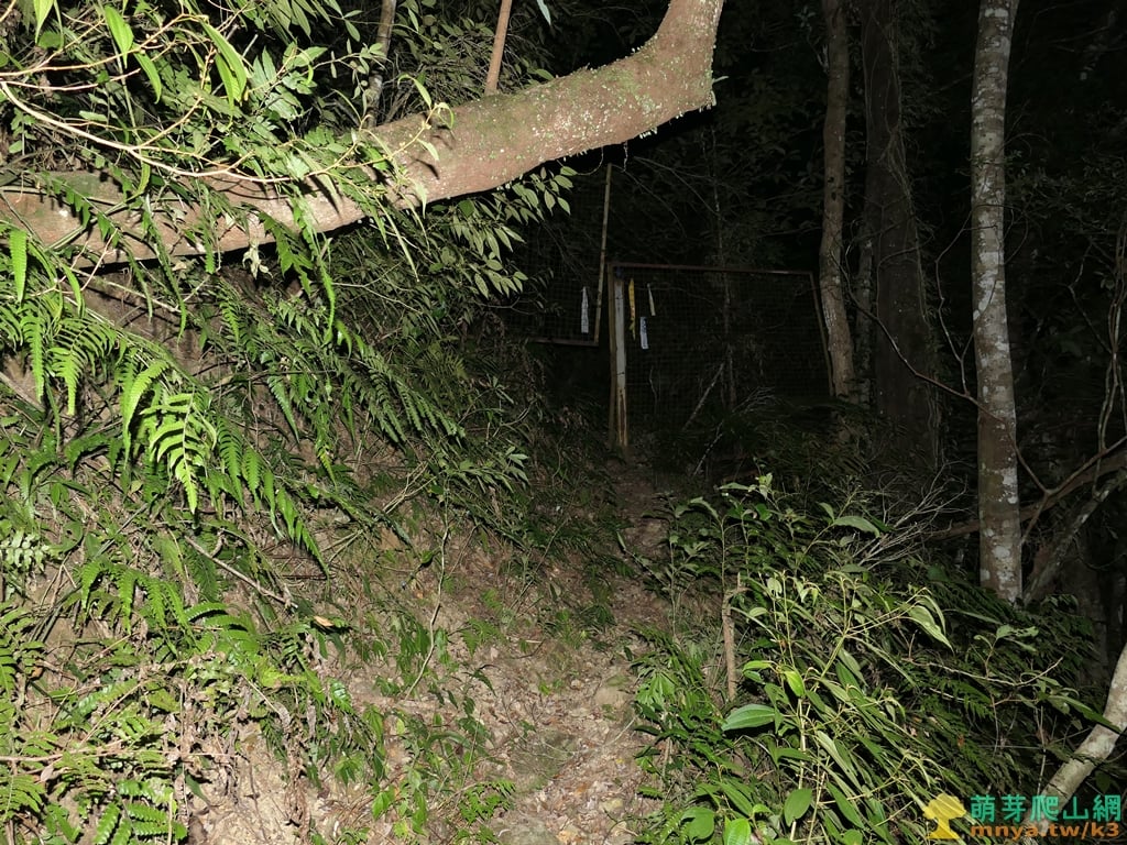 ▲18:16,循獵徑上行回鐵柵欄缺口,陡坡稍緩轉平坦。