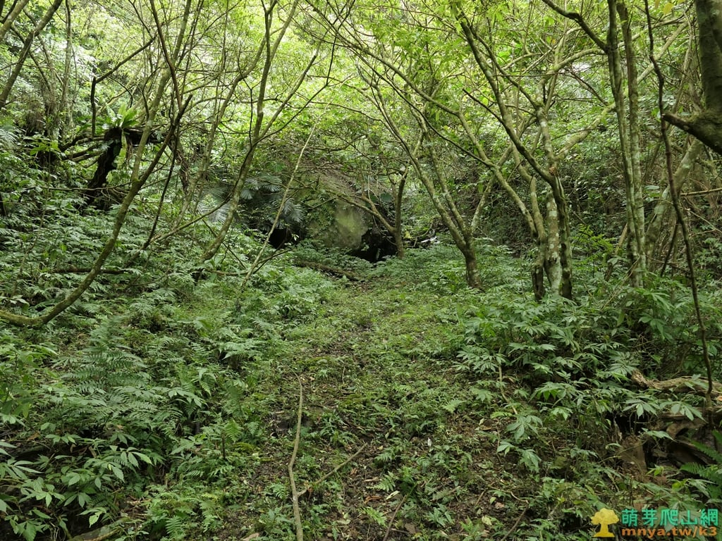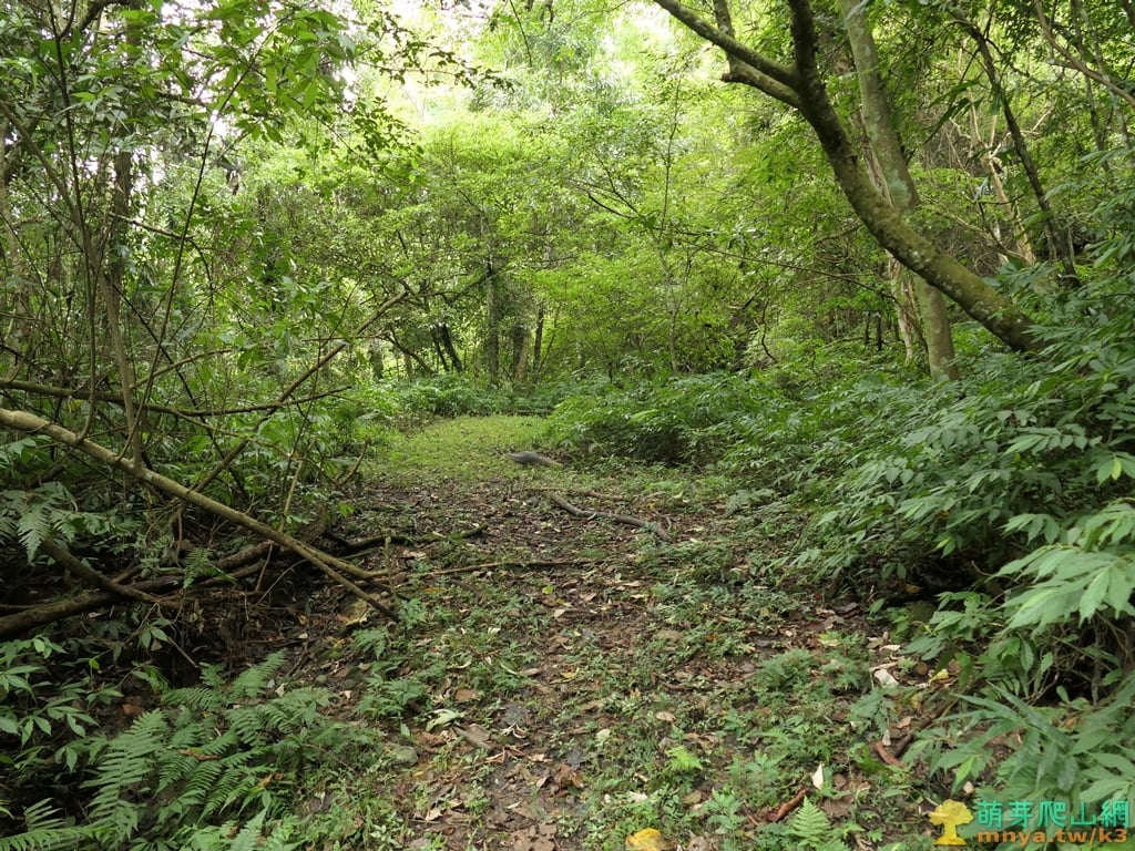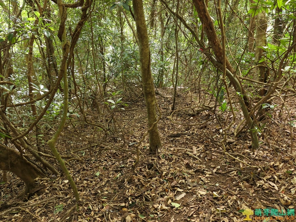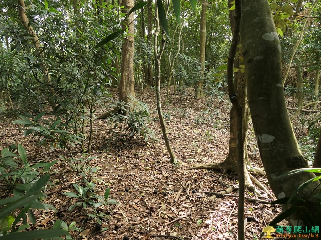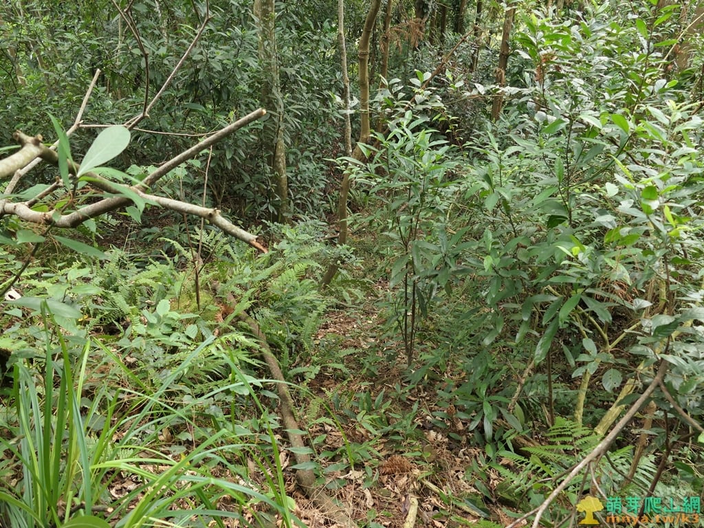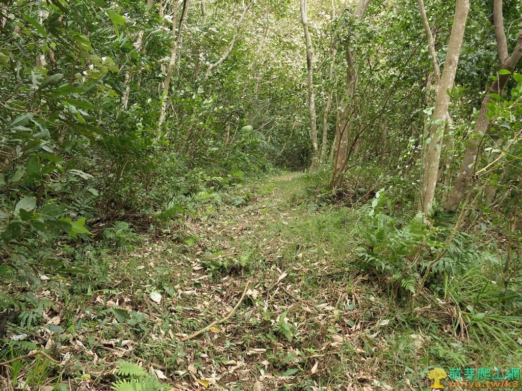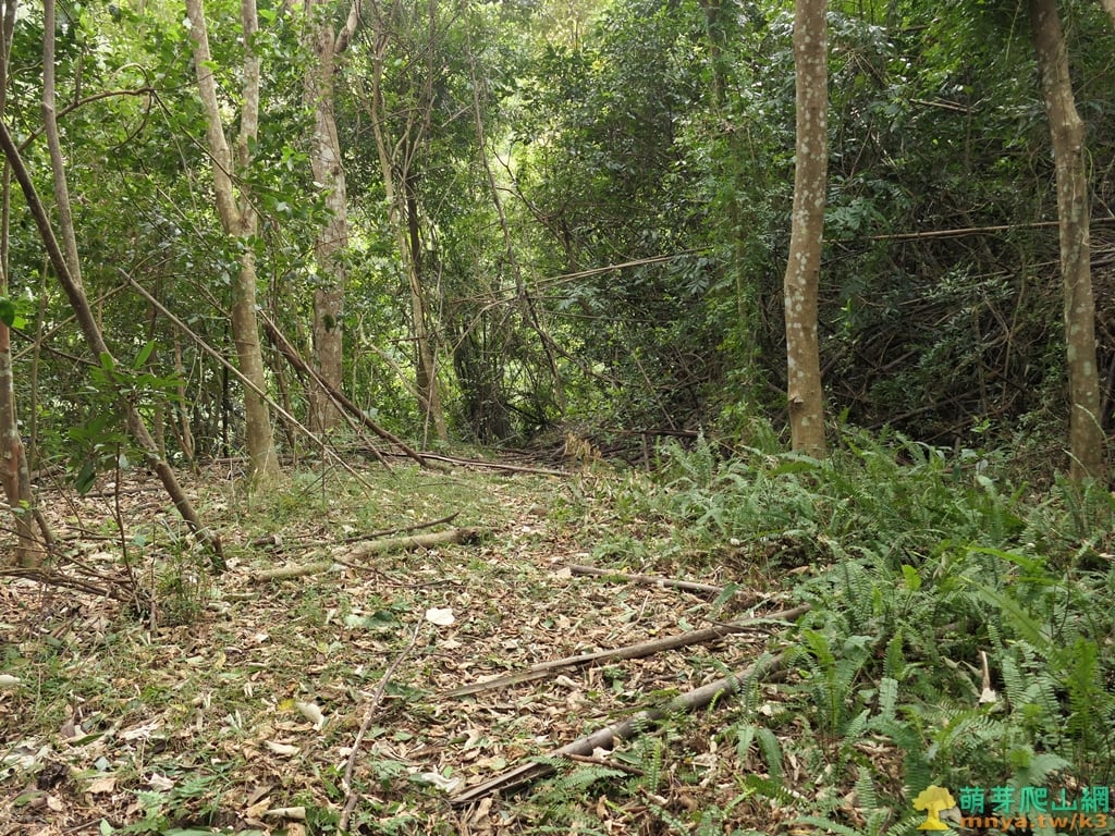 ▲順平坦的稜線向南行,植被還算乾淨但有些許黃藤叢。