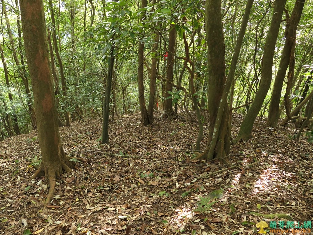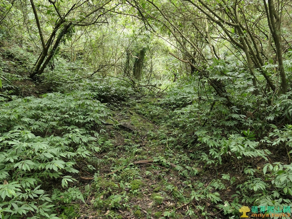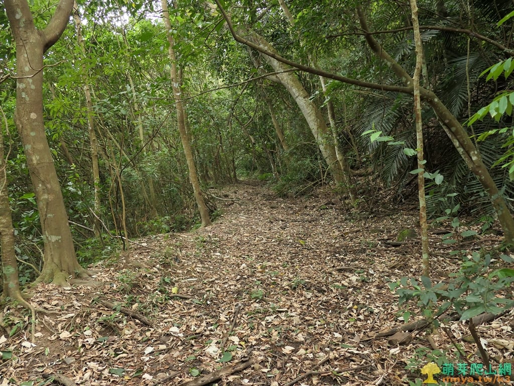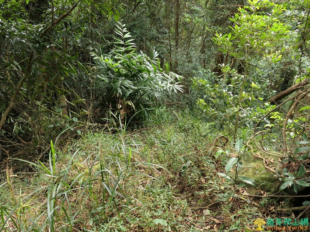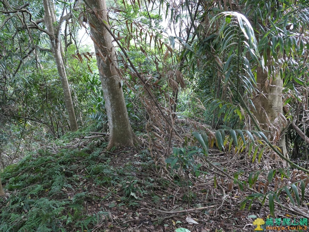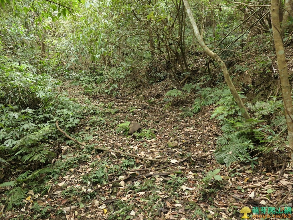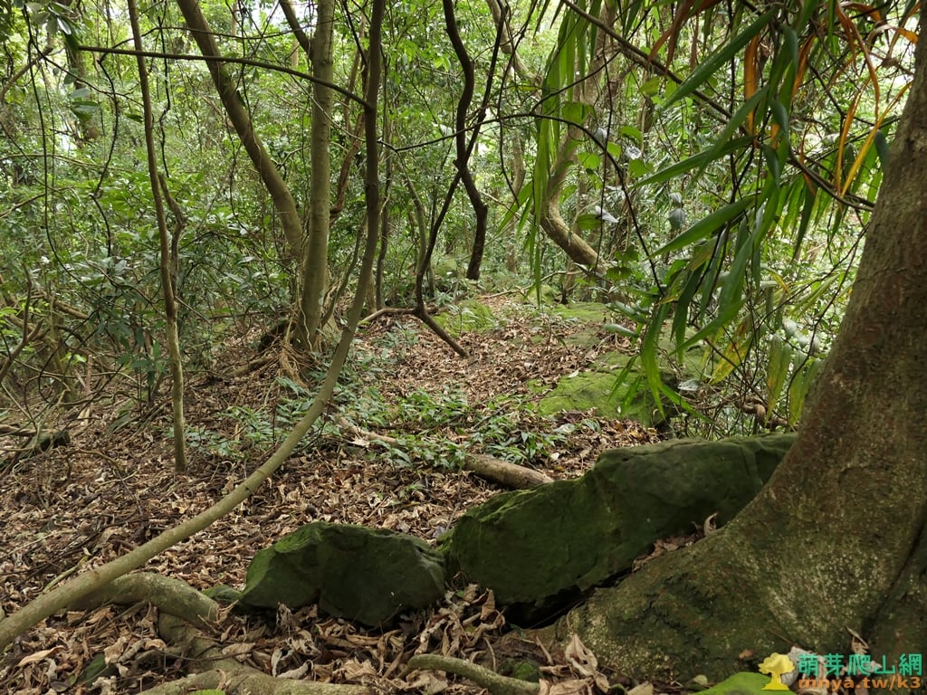 ▲順平坦的稜線向南行,植被還算乾淨但有些許黃藤叢。