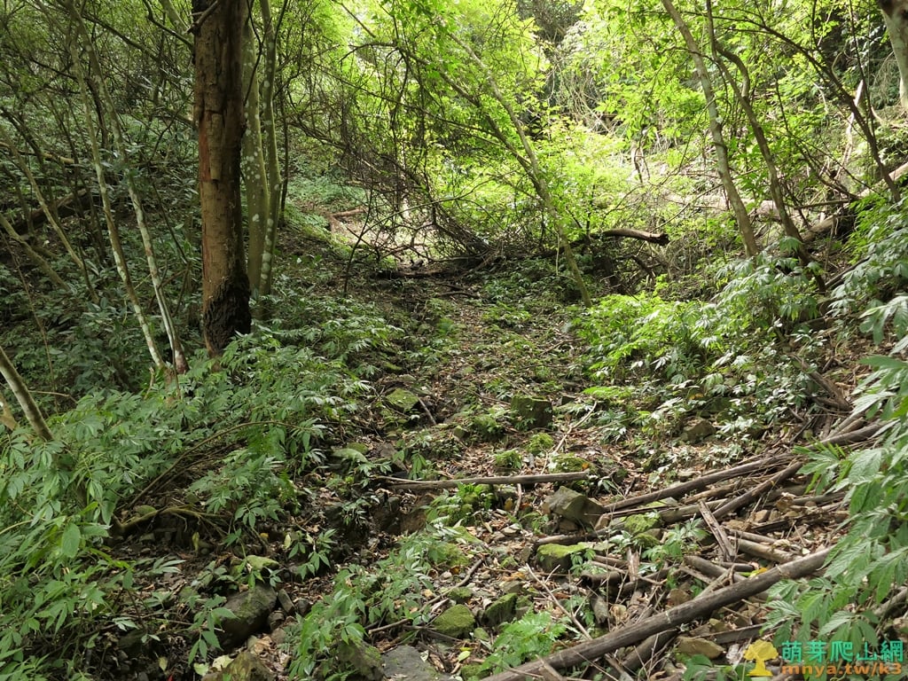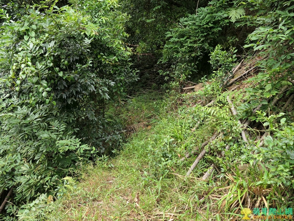 ▲入山谷地形土路左彎向上,經過倒木藤蔓。