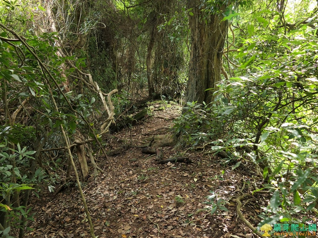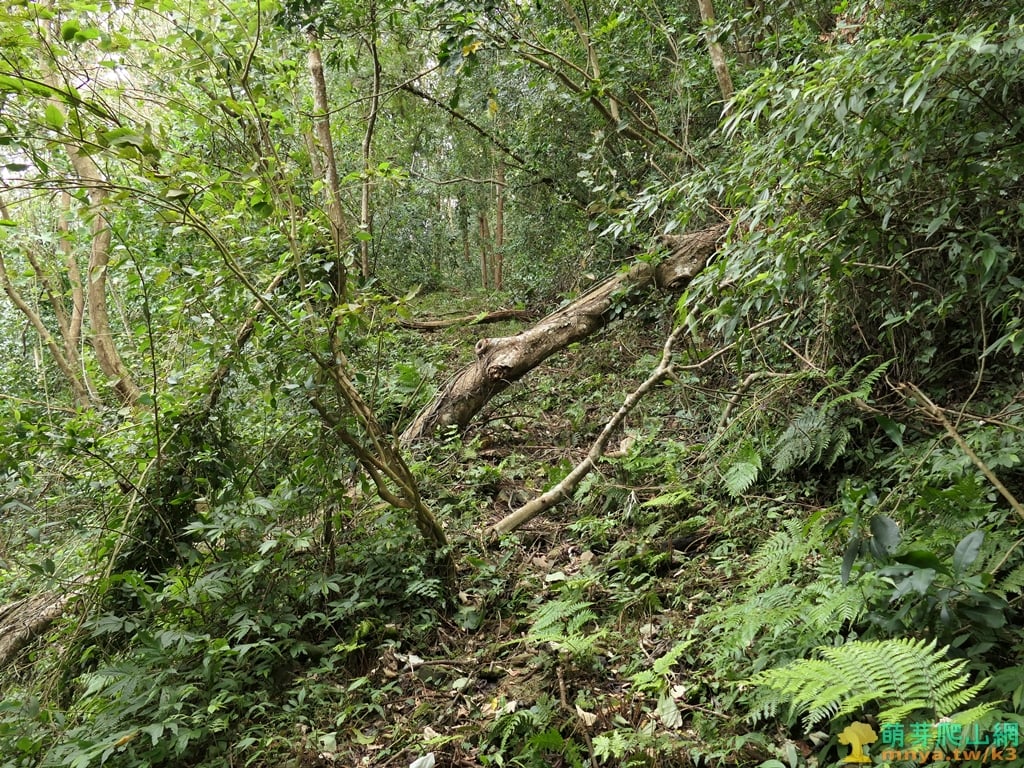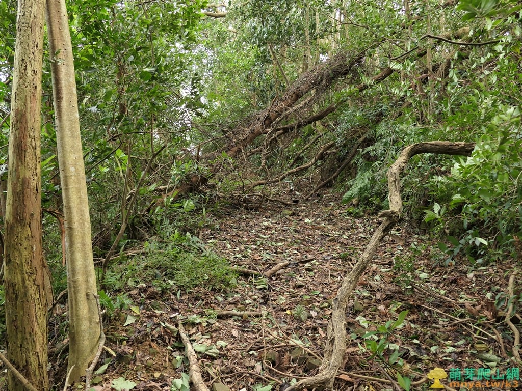▲續行陡下遇大片倒木從左側繞過,路徑不太清楚但植被還算乾淨。
