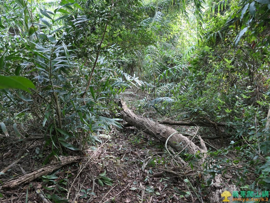 ▲順山坡邊走跨越橫倒路中的倒木,路徑因為是保線路都有清理過。