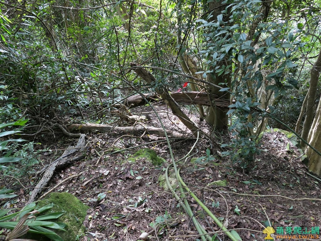 ▲經廢土路繼續順支稜往下,經過一處小駁坎。