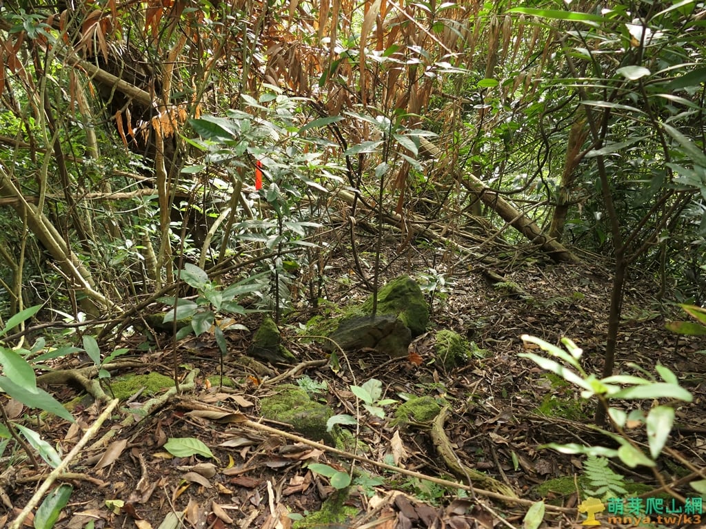 ▲16:00,下行經橫向的廢土路,繼續取直下支稜,直距基石剩50公尺。