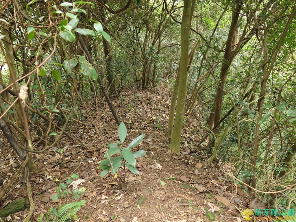 ▲15:08,繞至電塔後方後,向南進入樹叢間的小徑續行稜線,此向南稜可通往蕃婆石山北峰、蕃婆石鞍部、蕃婆石山,或今日的目標蕃婆石山西峰,此處高約625公尺,直距蕃婆石山西峰約0.5K。