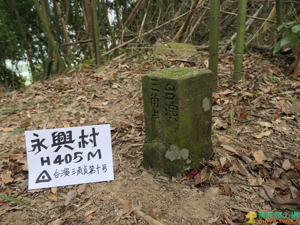 永興村 標高405公尺 台演三角點第十號 座標 : 235499, 2631082;23.7819079, 120.8658508