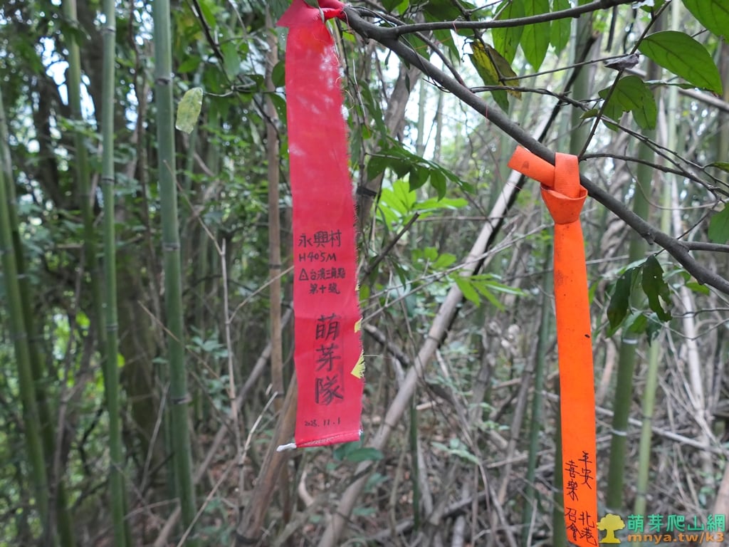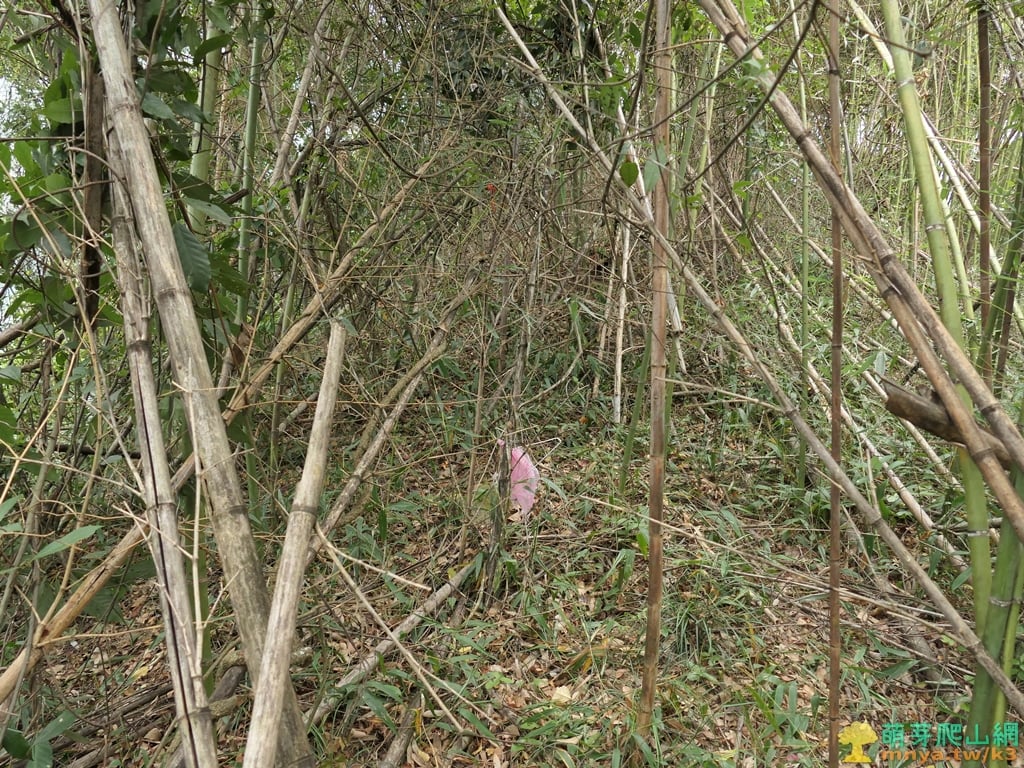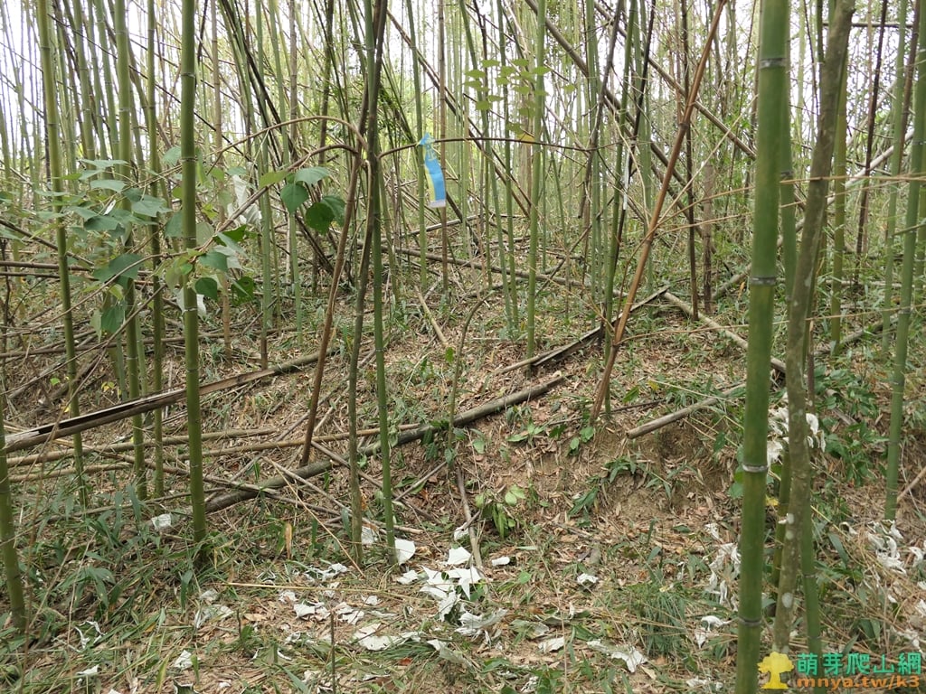 ▲沿竹林間的廢土路走約50公尺取右上,接著的路沒有路跡與路條可循,看距離點位差不多了直接上切往稜線高點。
