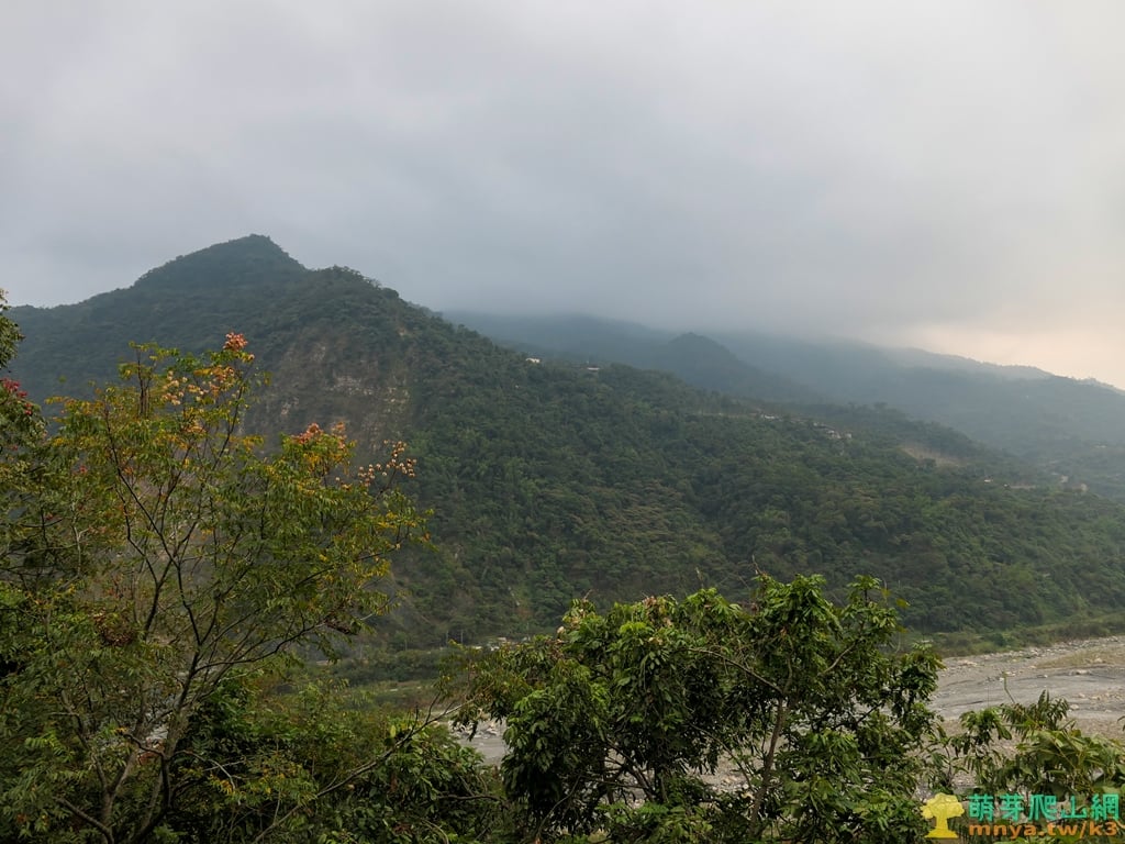 ▲眺望陳有蘭溪另一側的山景,對面山坡為人倫林道四公里地區,上方人倫山(1196M)連稜都在雲霧之中看不到。