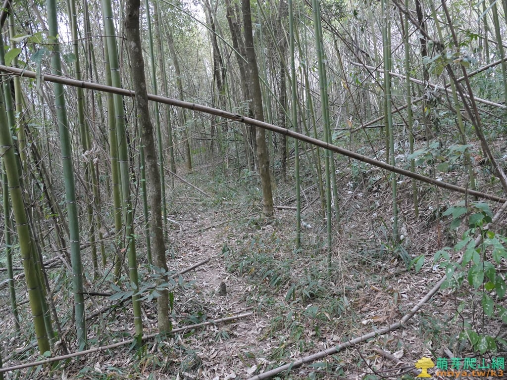 ▲右轉平緩的稜至較高處前,有一些倒竹藤蔓阻路。