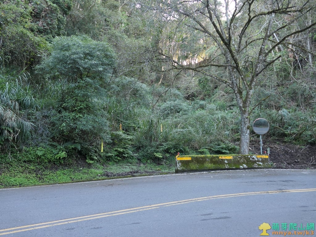 ▲15:44,同富山(埔沙山)位於台21線(新中橫公路水里玉山線)134.45K彎道右側,路邊矮牆後右上進入雜草叢生的山谷間小徑,路口有一根「道」字水泥柱,登山口高約2105公尺,直距同富山(埔沙山)約0.48K。