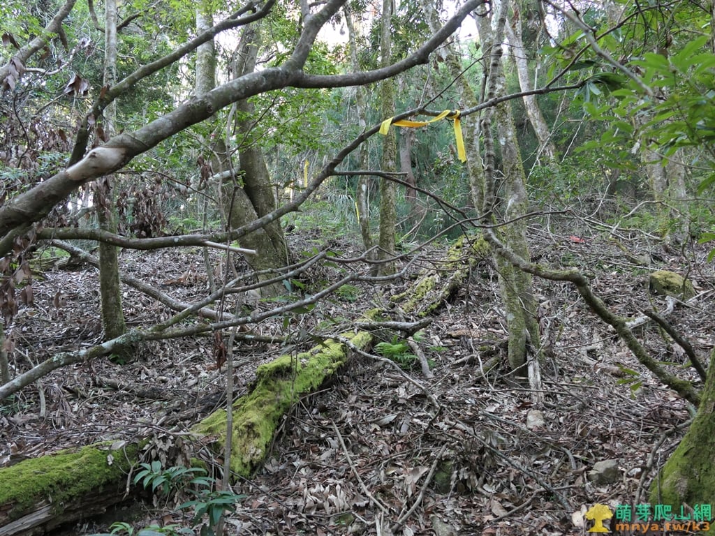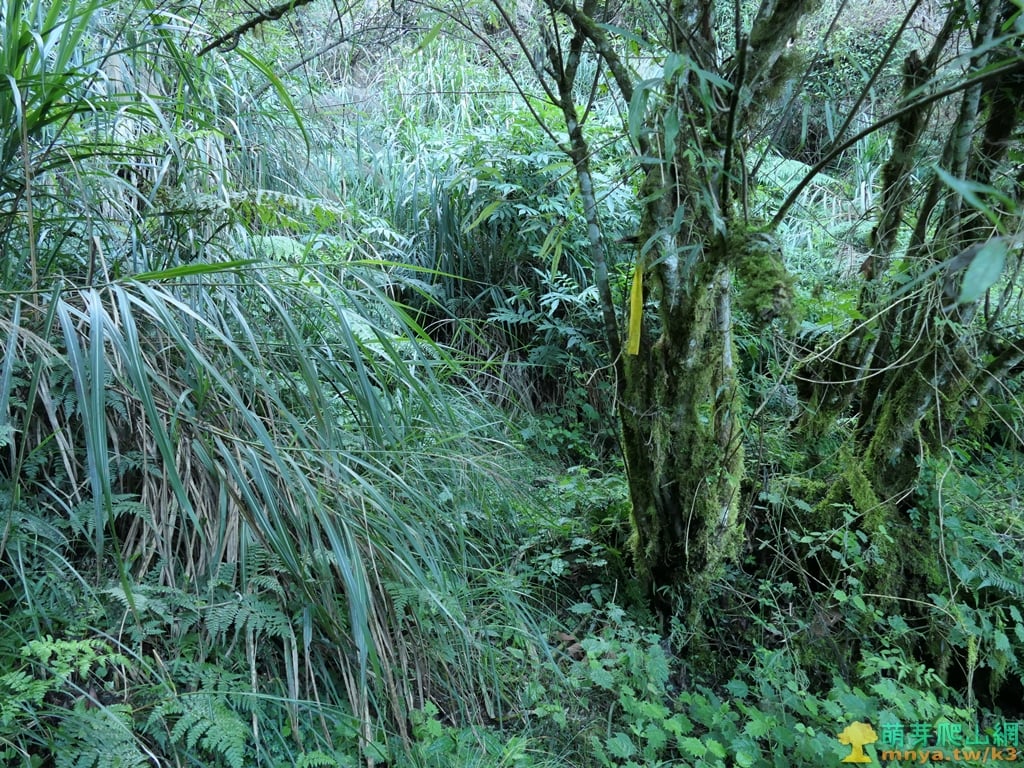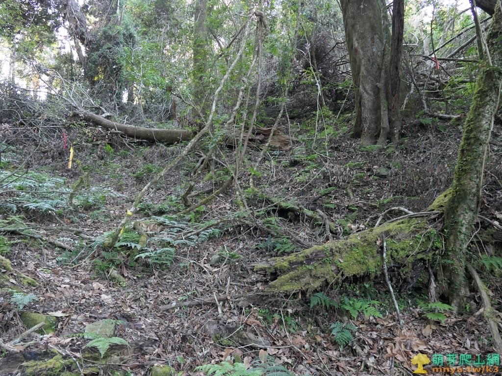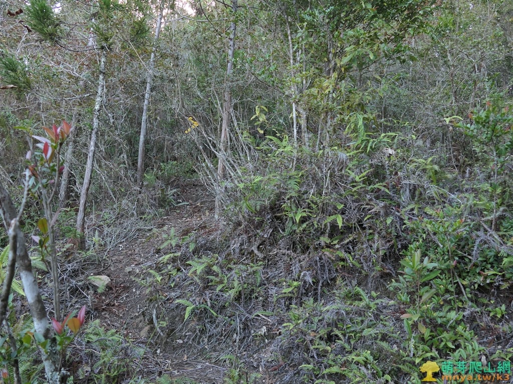 ▲續行離開芒草區上方谷地有一片倒木,山徑取右上繞過,離開山谷後就沒有咬人貓叢了。