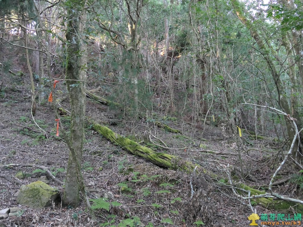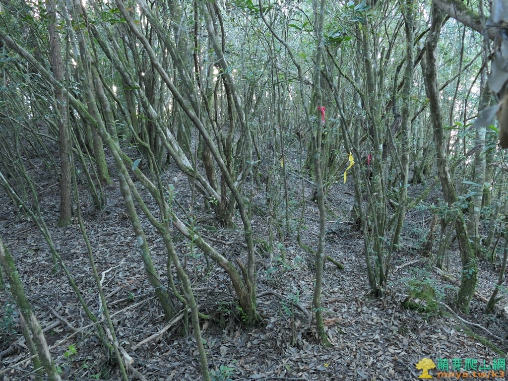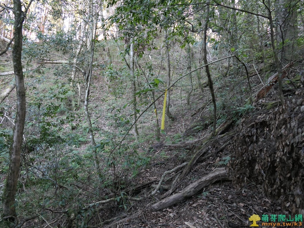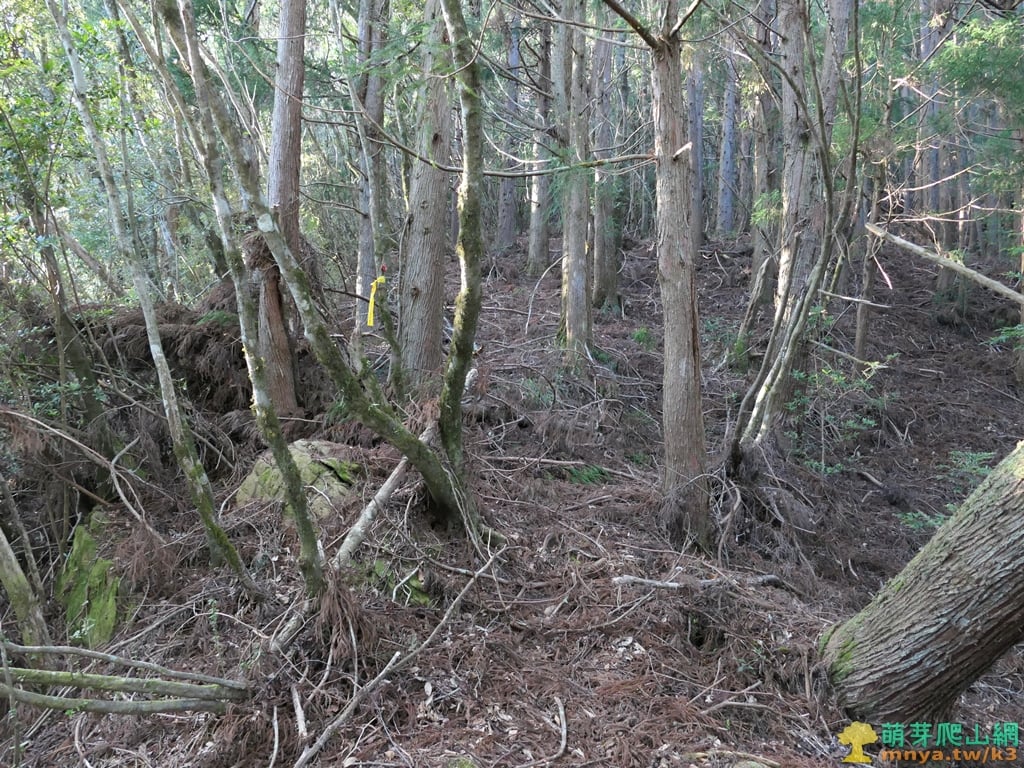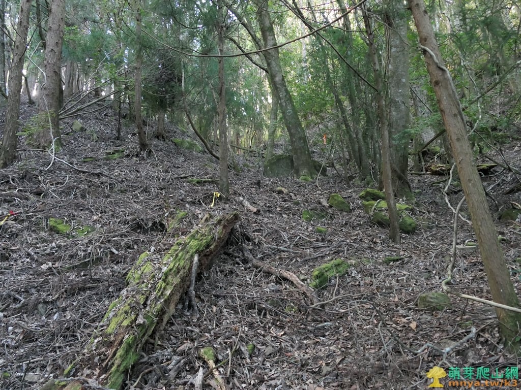 ▲續行離開芒草區上方谷地有一片倒木,山徑取右上繞過,離開山谷後就沒有咬人貓叢了。