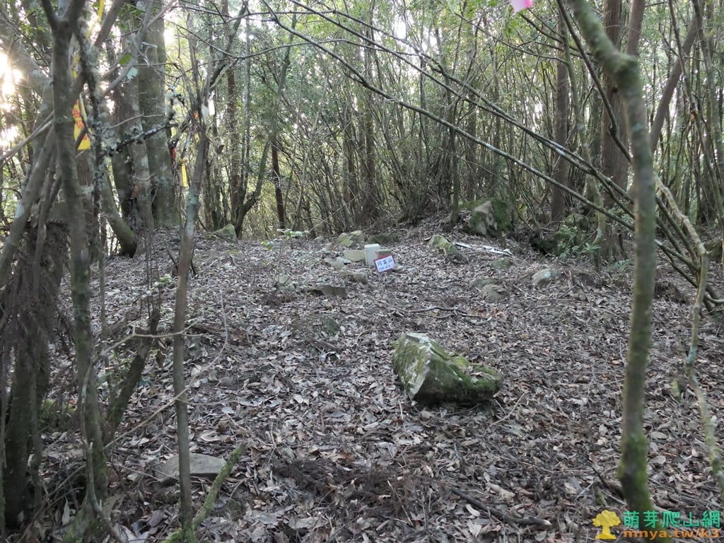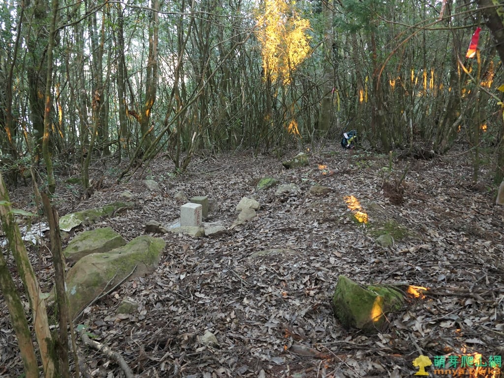 ▲另一角度回看來時方向,山頂平坦周圍木林茂密沒有展望。16:55,斜陽照入樹林,時間不早了拍完照原路回程。