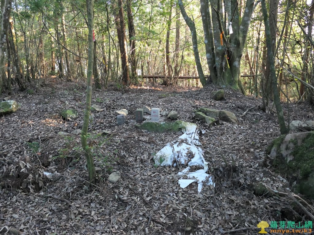 ▲另外一面,二等原點早已遺失,近期2025/05/04國土測繪中心與山友志工補立新點,順道將2007年時山友挖出的原點基盤埋入土中。