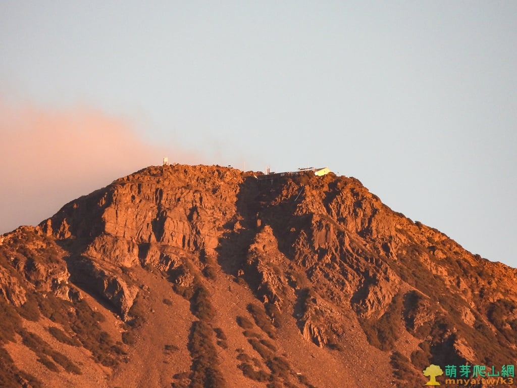▲拉近遠眺玉山北峰(3858M)上的中央氣象署玉山氣象站,玉山北峰為百岳八秀之一,山頂無基石。