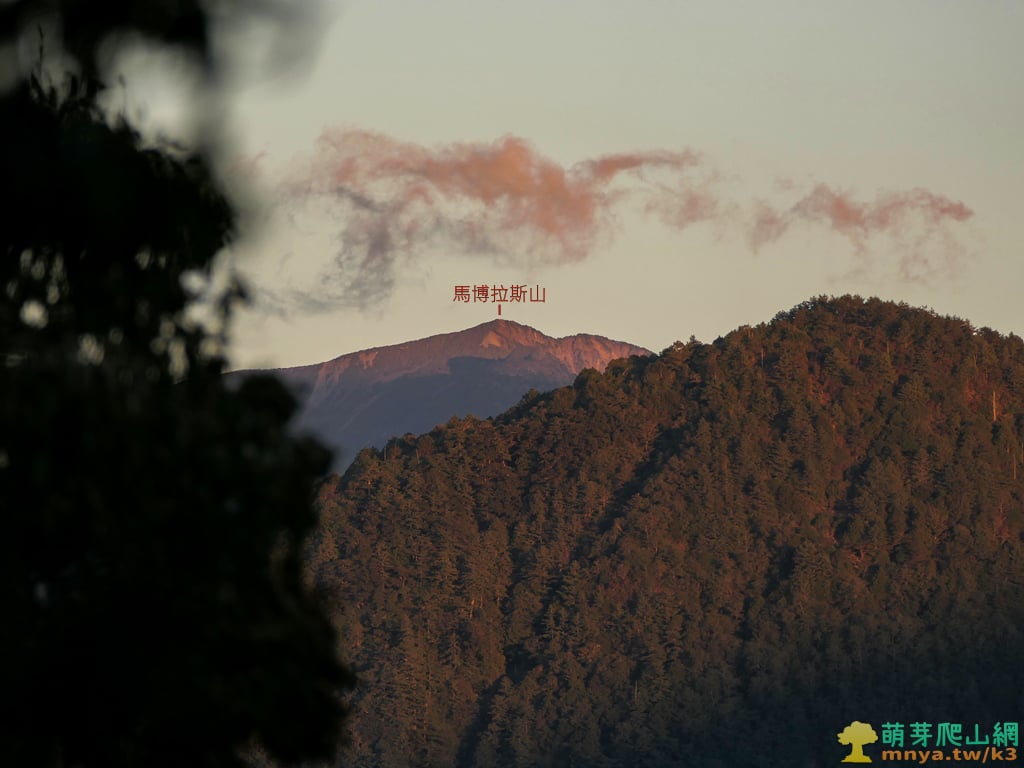 ▲拉近遠眺馬博拉斯山(3776M),又名烏拉孟山,為中央山脈第二高峰,百岳十峻之一,亦為台灣第七高峰。
