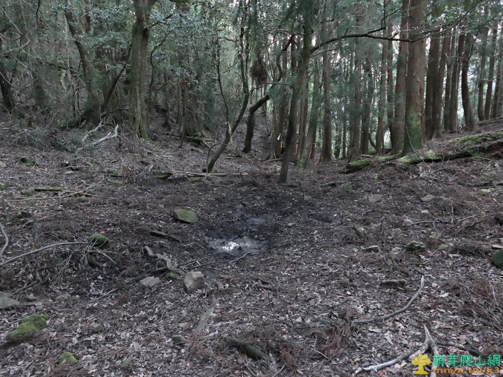 ▲16:02,陡上至寬敞山谷凹地,中間有一灘動物翻滾出的泥地,取直上往稜線方向。