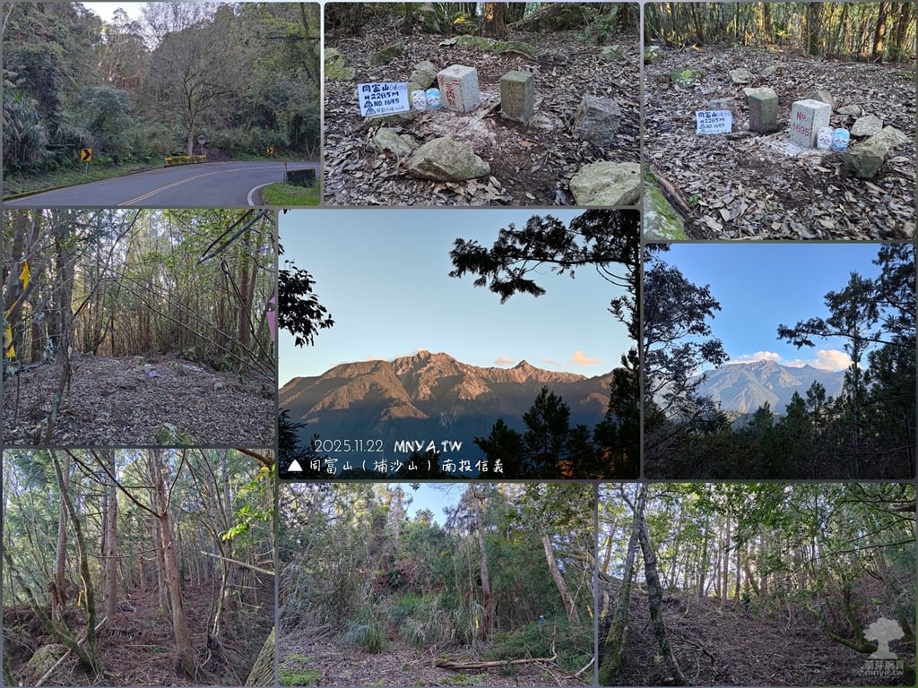 ※同富山(埔沙山)二等原點早已遺失,山友於2007年挖出盤石,近期2025/05/04國土測繪中心與山友志工,同心協力設立新補點,與原本的聯勤三等三角點內補360號;新中橫15號基石並立,原點盤石則再次埋入土中看不到了。