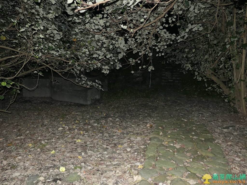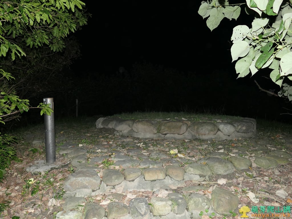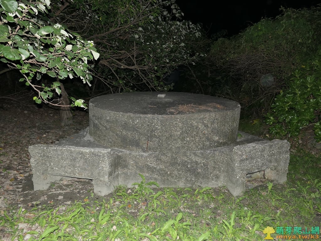 ▲步道走約60公尺,於兩個高點之間的低處左側見碉堡,內埤海軍海洋測量局三等三角點125金屬標就在此碉堡上。