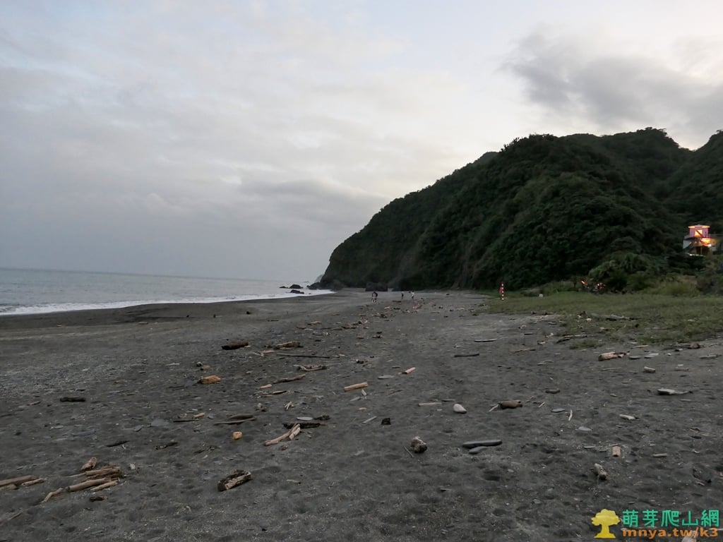 ▲眺望內埤海岸北邊的大山(87M)、南方澳山(95M)、猴猴鼻(50M),此時已日落海岸邊顯得光線昏暗,但觀海的遊客還是挺多的。