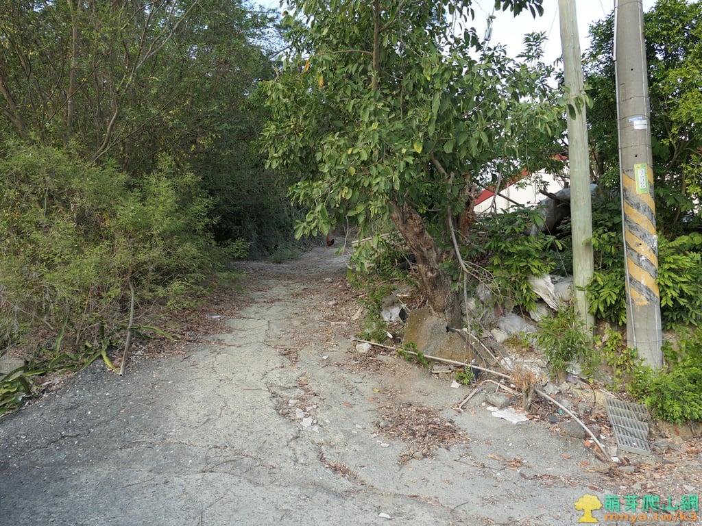 ▲17:06,下行3分鐘回到土路0.25K登山口,稍微探一下往右上的土路通往果園,高處略有展望。