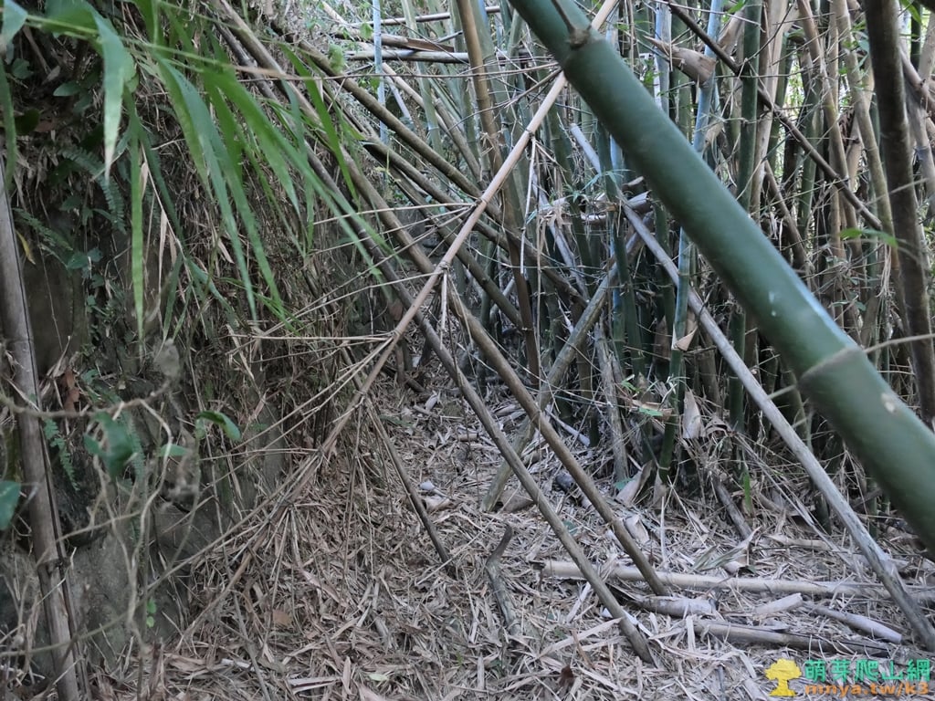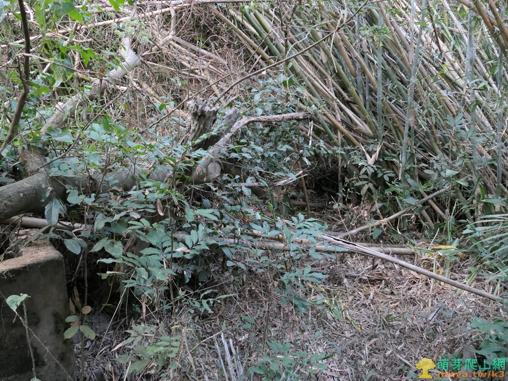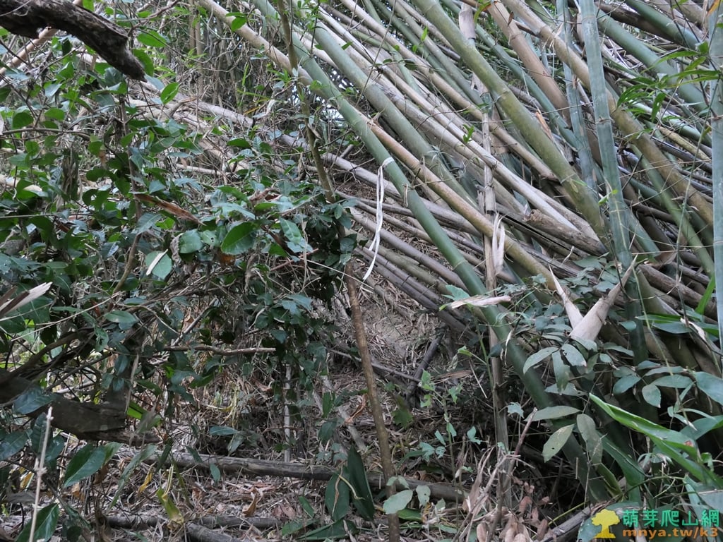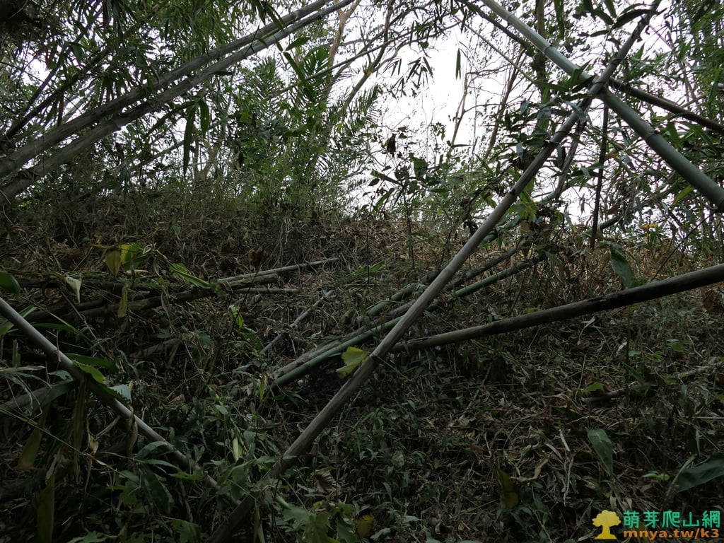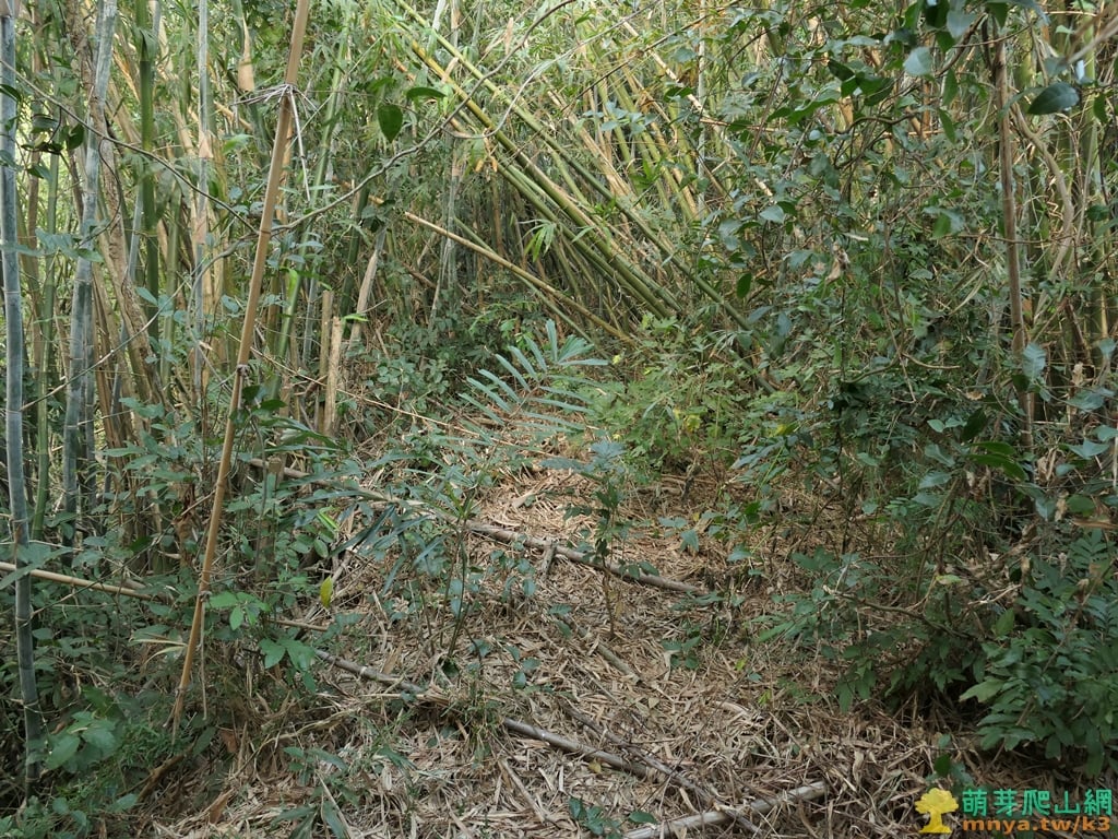 ▲右上沿竹叢邊的小路往稜線走,有一條明顯的路基。