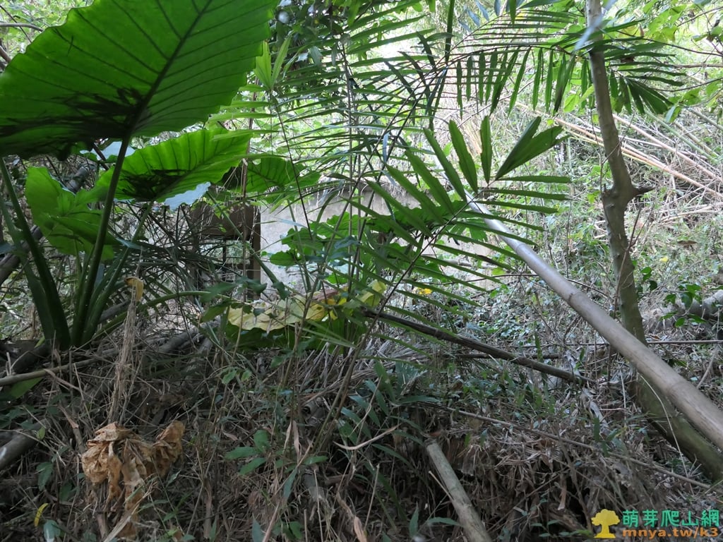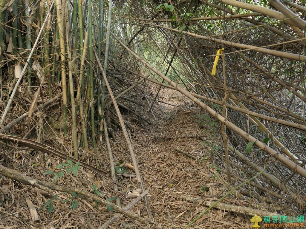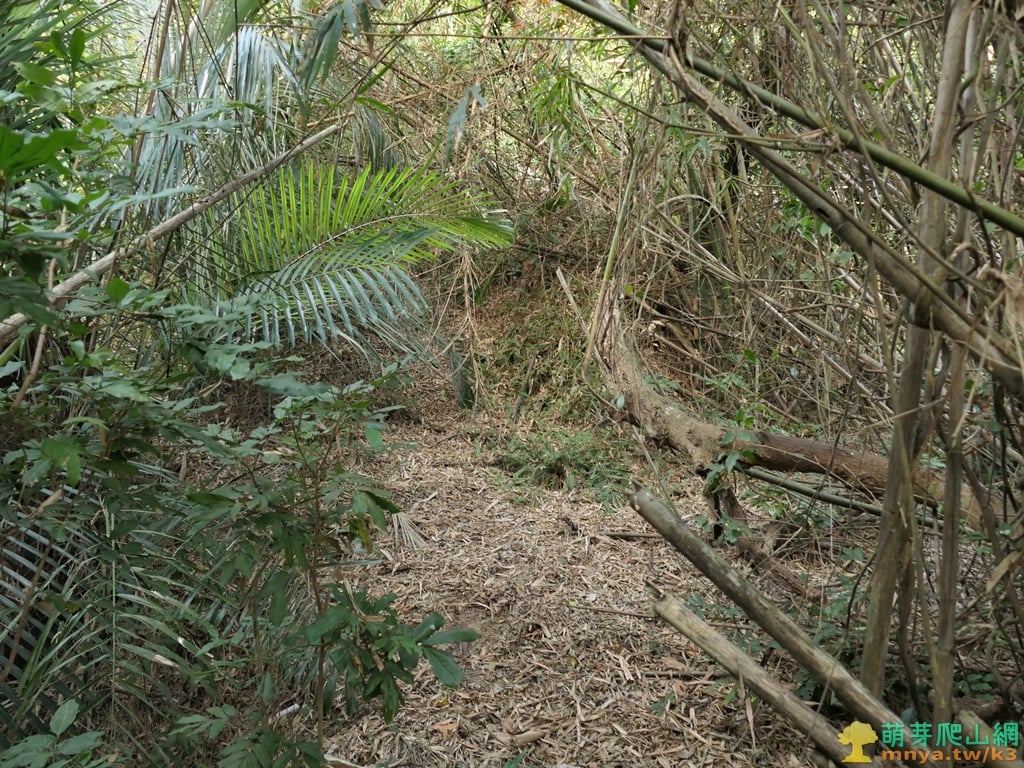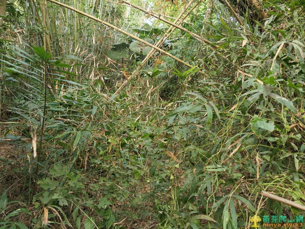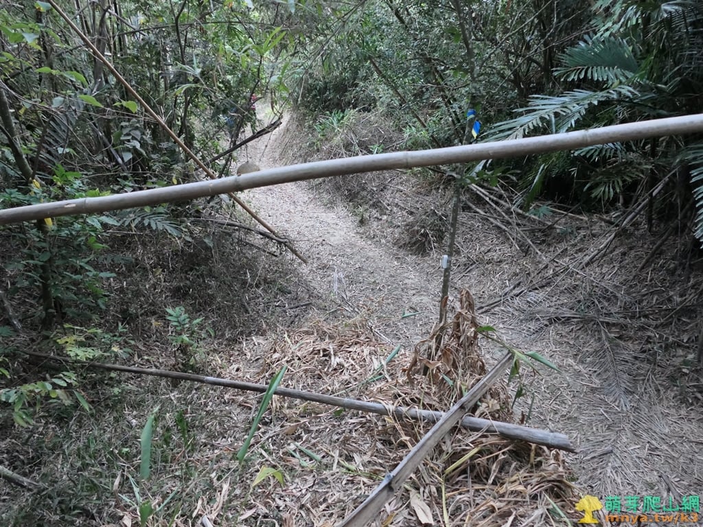 ▲右上沿竹叢邊的小路往稜線走,有一條明顯的路基。