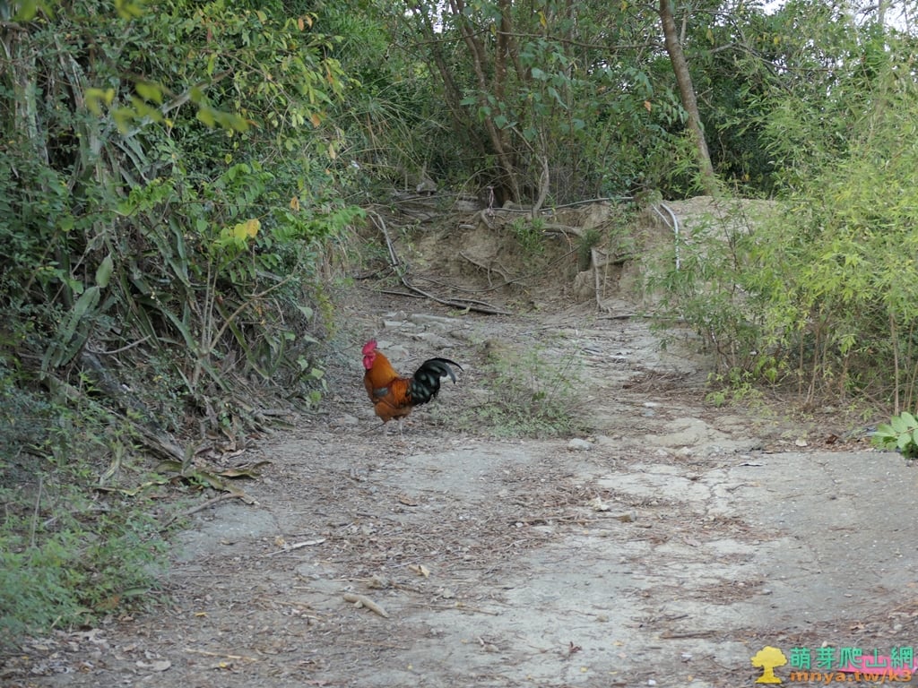 ▲前行20、30公尺水泥路底轉土路,民宅附近的山坡養著好多放山雞到處跑。