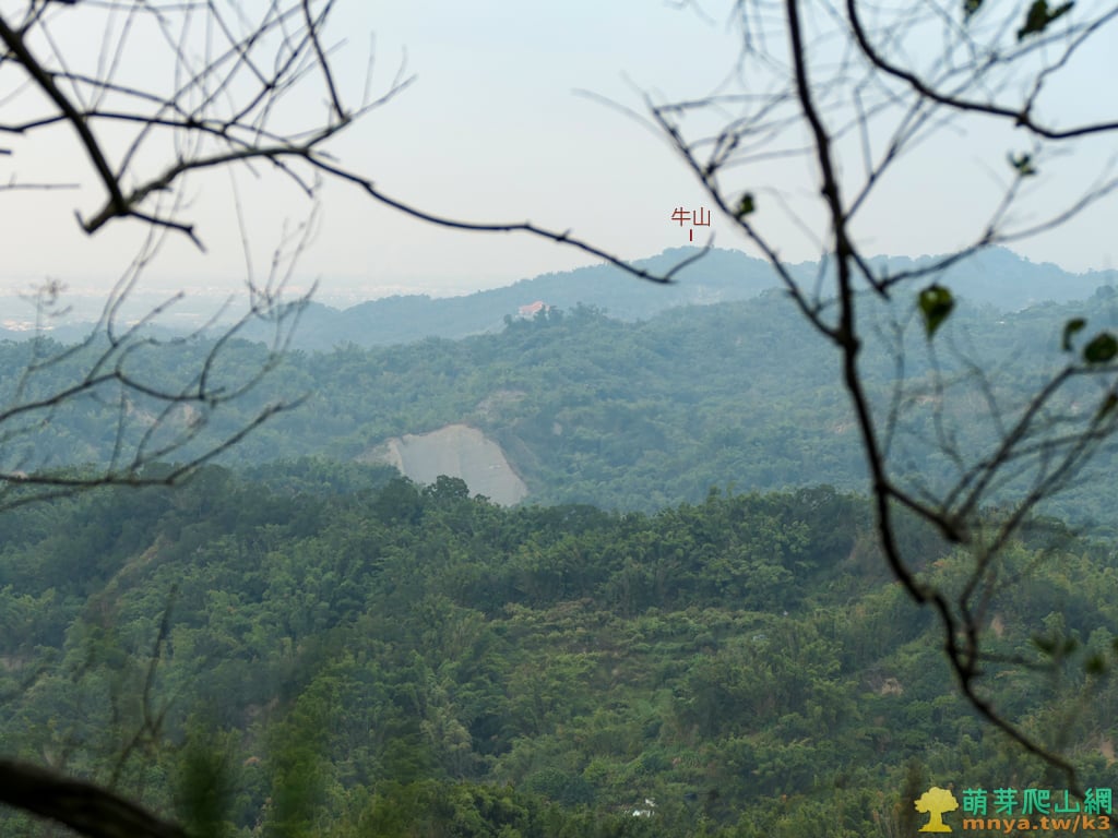 ▲拉近眺望位於台南市東山區的牛山(212M),可見山腰位置的法雲禪寺。