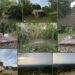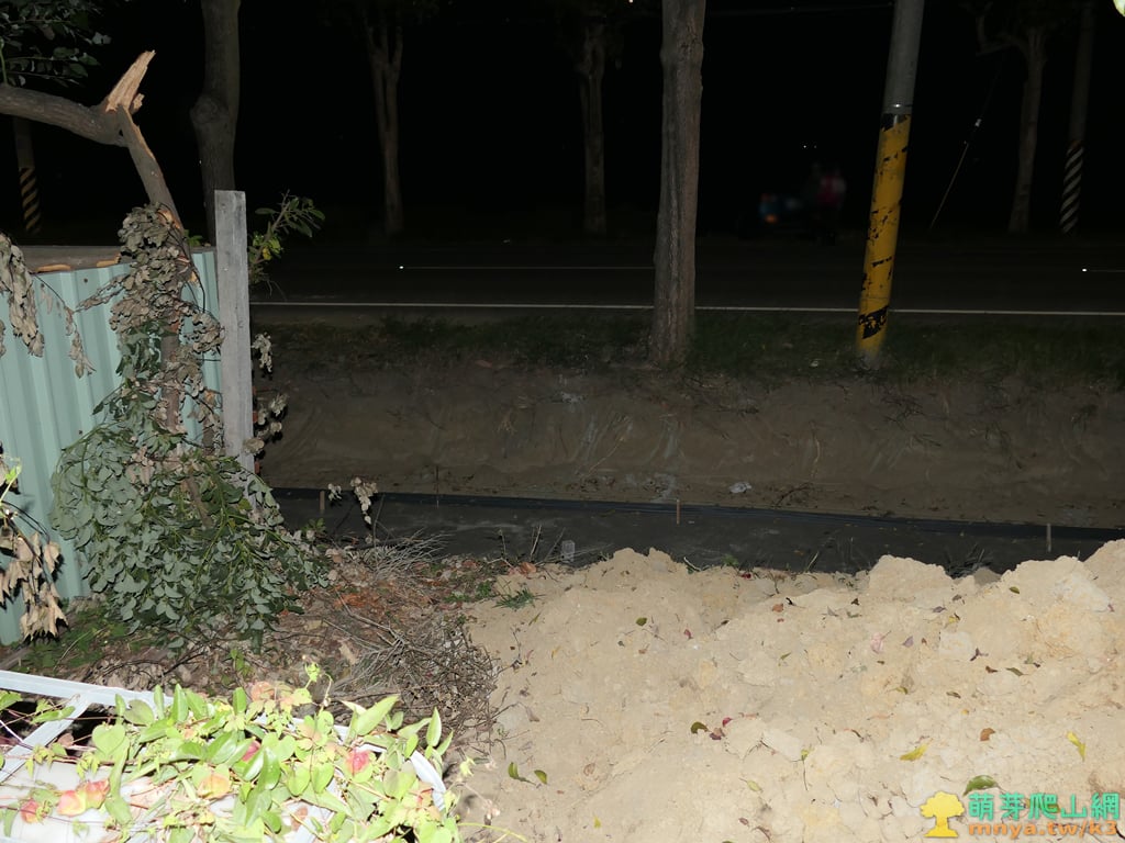 ▲取左跨越正在施工的排水溝,沿民宅前鐵皮圍牆進入農地,路邊堆滿了排水道挖出的土方。